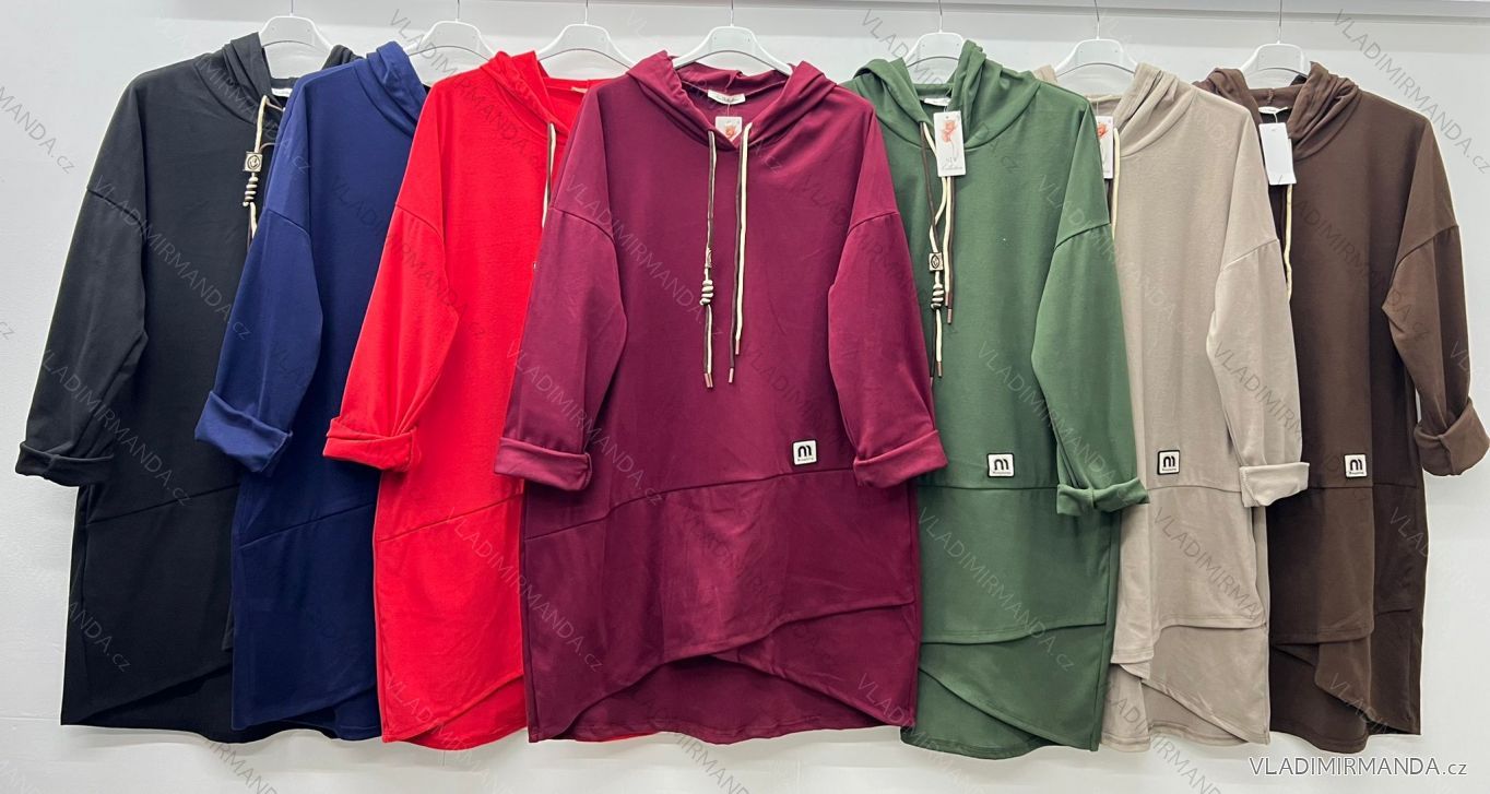 Šaty mikinové s kapucí dlhý rukáv dámske nadrozmer (40/42/44 ONE SIZE) TALIANSKA MÓDA IM425684