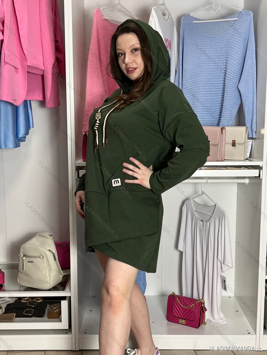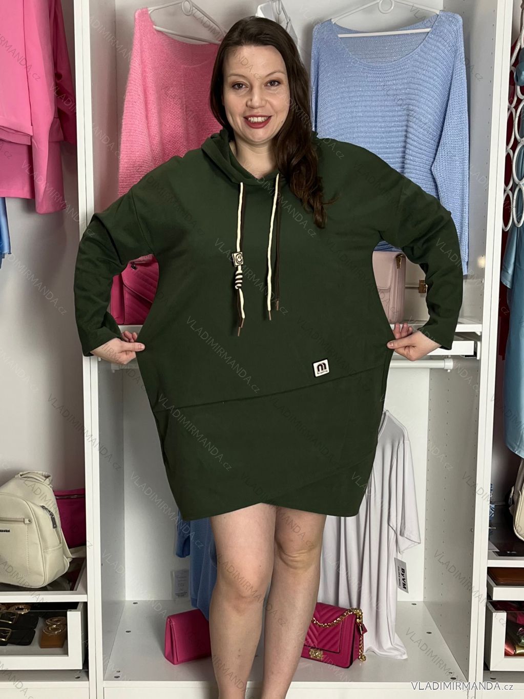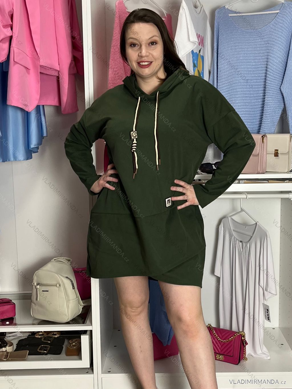 TOVAR (120269) > oblečenie dámske (81393) > šaty (30611) > šaty teplákové (467) > Šaty mikinové s kapucí dlhý rukáv dámske nadrozmer (40/42/44 ONE SIZE) TALIANSKA MÓDA IM425684