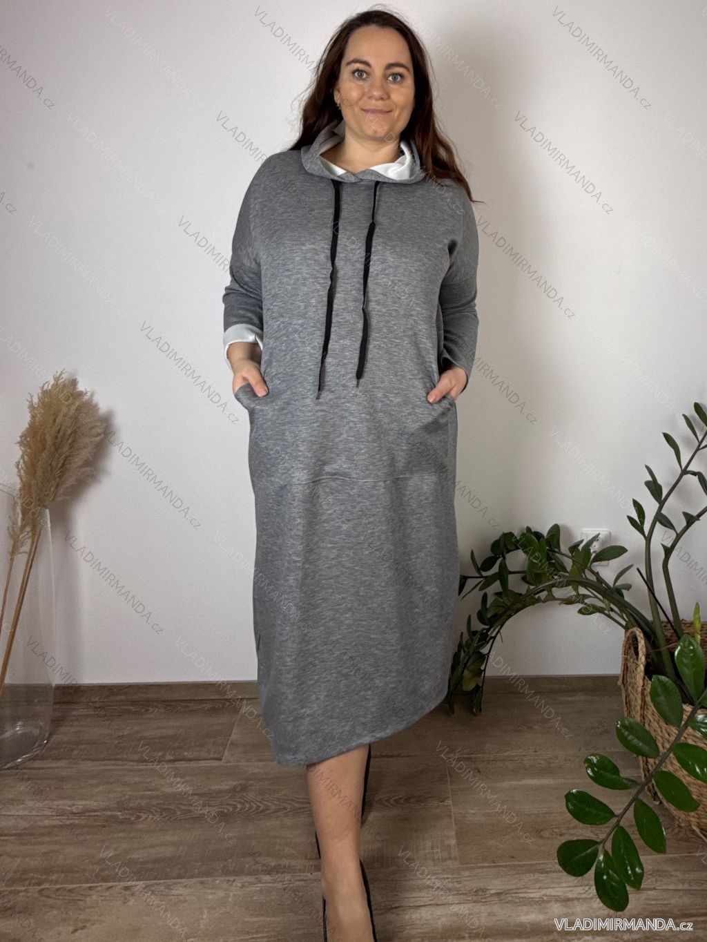 TOVAR (120850) > oblečenie dámske (81917) > šaty (30765) > Šaty nadrozmerné XXL+ pro Boubelky (4460) > Šaty mikinové s kapucňou a vreckami dlhý rukáv dámske nadrozmer KARLA (54/56/58 ONE SIZE) TALIANSKA MÓDA IMD25159