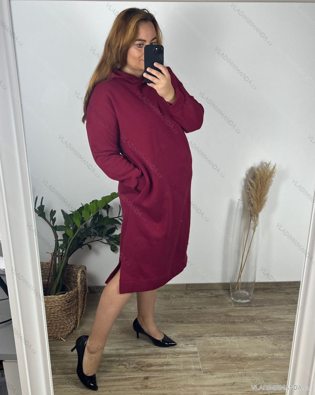 Šaty mikinové teplé s kapucňou dlhý rukáv dámske nadrozmer (54/56 ONE SIZE) TALIANSKA MÓDA IMD24364