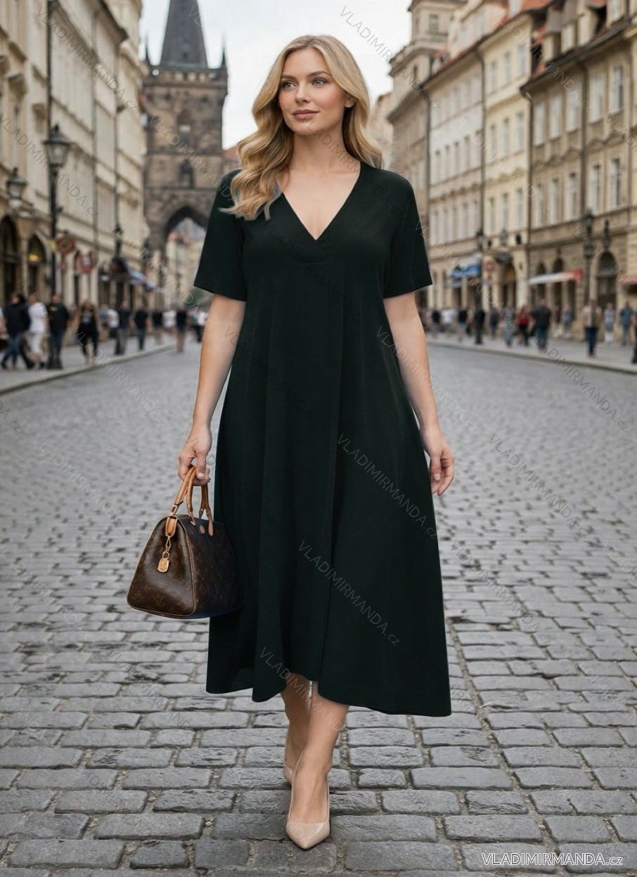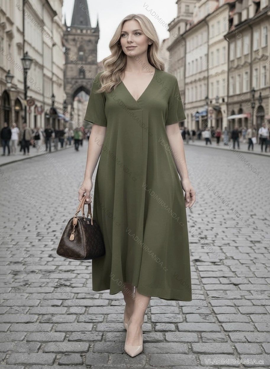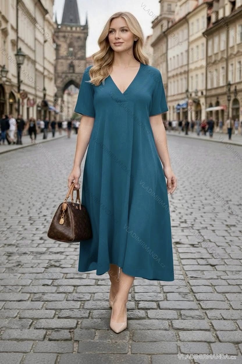 TOVAR (120859) > oblečenie dámske (81926) > šaty (30764) > Šaty oversize krátky rukáv dámske nadrozmer (54/56/58 ONE SIZE) TALIANSKA MÓDA IMD26063 zelená smaragdová 54/56/58