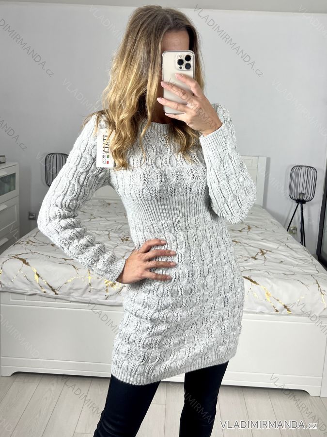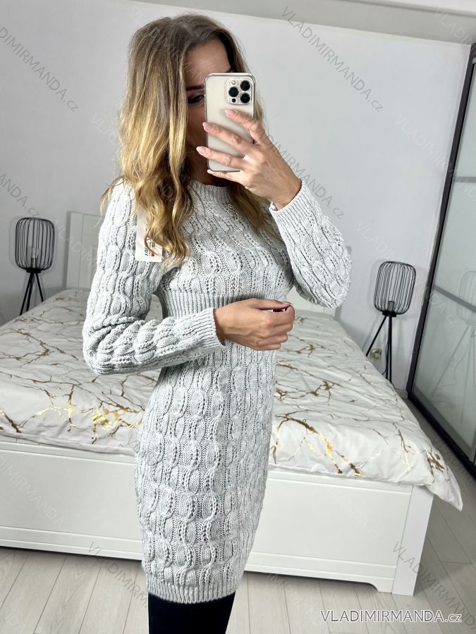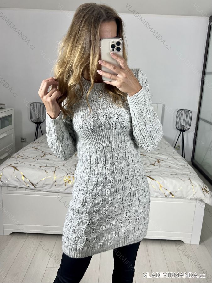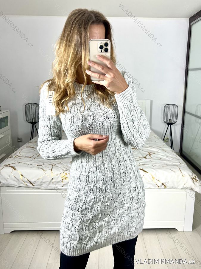 Šaty pletené dlhý rukáv dámske (S / M ONE SIZE) TALIANSKÁ MÓDA IMC23120