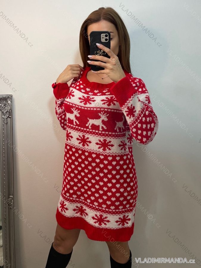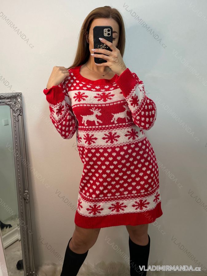Šaty pletené dlhý rukáv dámske vianočné (S/M ONE SIZE) TALIANSKA MÓDA IMPBB22X20286