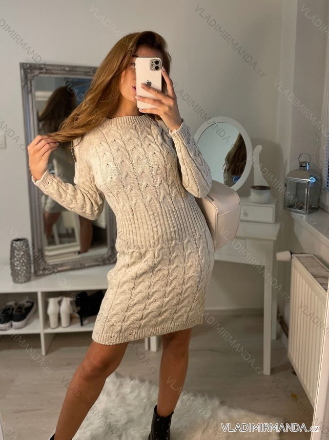 TOVAR (119264) > oblečenie dámske (80626) > šaty (30254) > Šaty pletené dlouhý rukáv dámské (S/M ONE SIZE) ITALSKÁ MÓDA IMWB22233