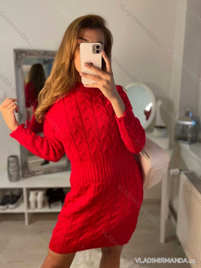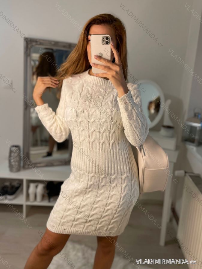 Šaty pletené dlouhý rukáv dámské (S/M ONE SIZE) ITALSKÁ MÓDA IMWB22233