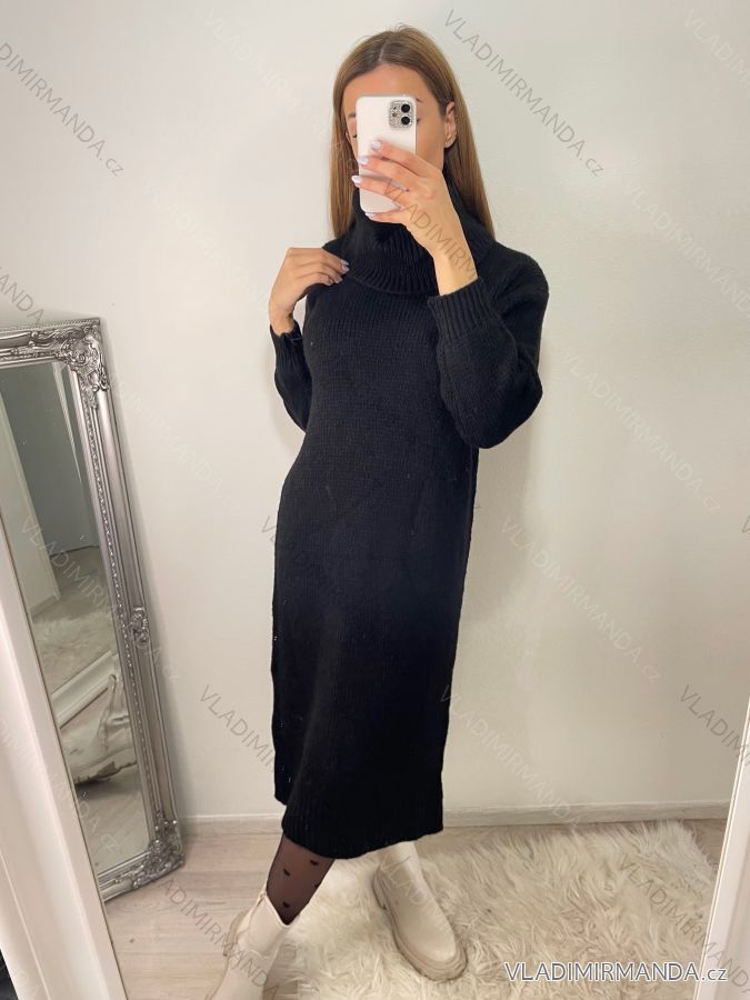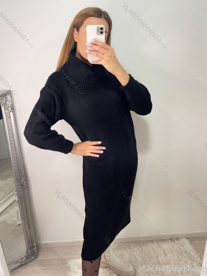 Šaty pletené s rolákem dlouhý rukáv dámské (S/M/L ONE SIZE) ITALSKÁ MÓDA IMPLI221799
