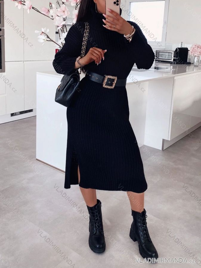 Šaty pletené s rolákom dlhý rukáv dámske (S/M ONE SIZE) TALIANSKA MÓDA IMWAA223588
