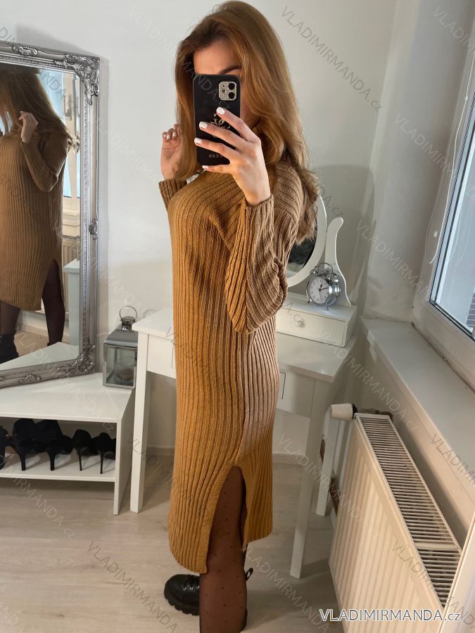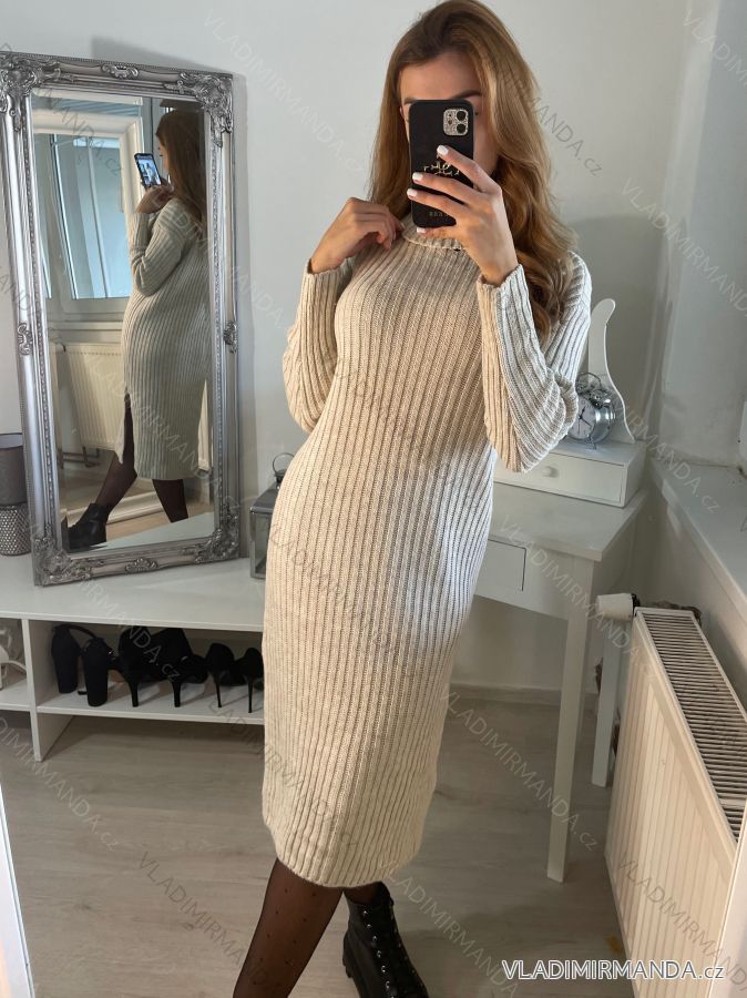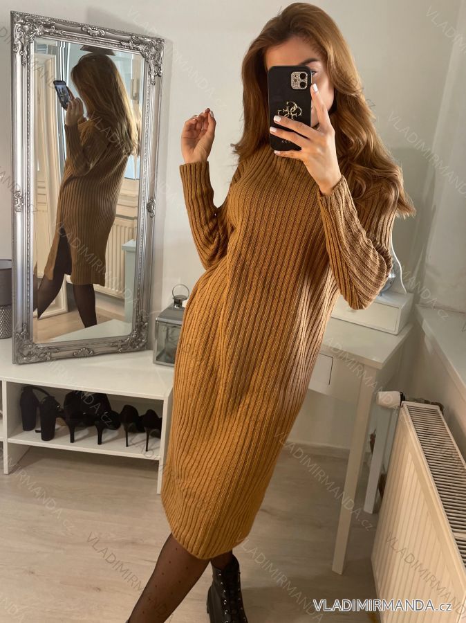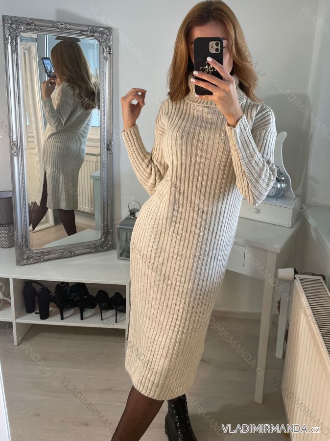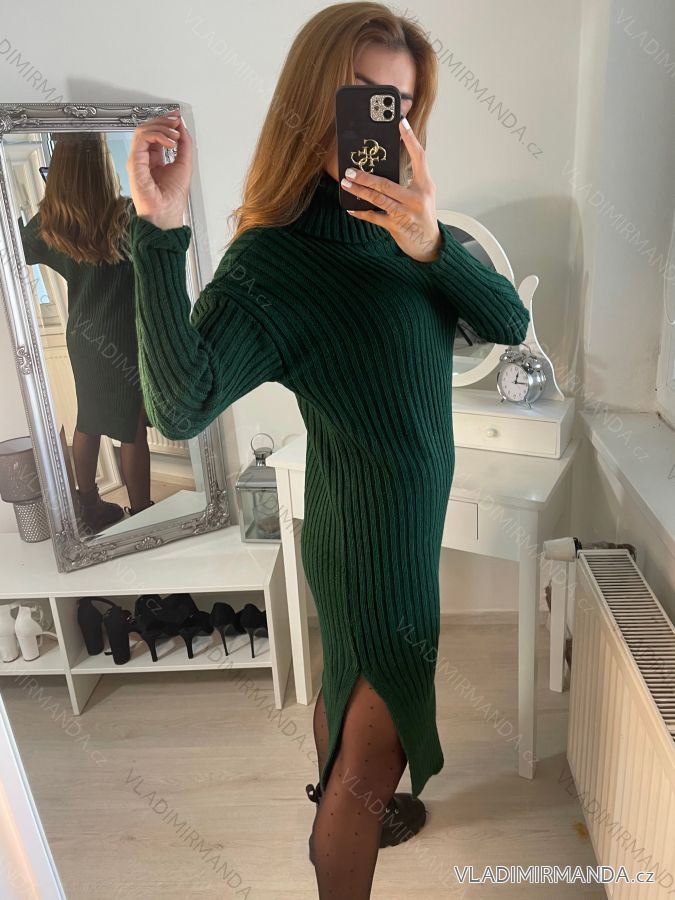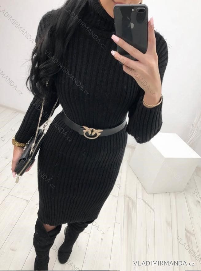 Šaty pletené s rolákom dlhý rukáv dámske (S/M ONE SIZE) TALIANSKA MÓDA IMWA223601