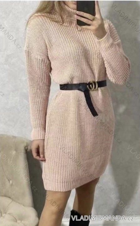 Šaty pletené s rolákom dlhý rukáv dámske