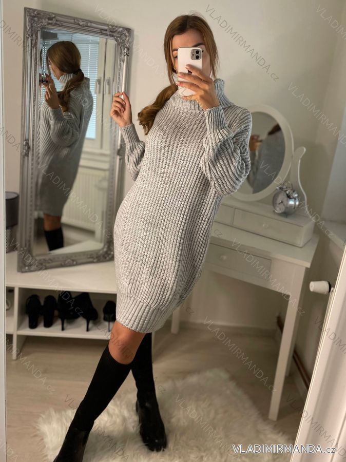 Šaty pletené s rolákom dlhý rukáv dámske (S/M ONE SIZE) TALIANSKA MÓDA IMWB22343/DR čierna S/M
