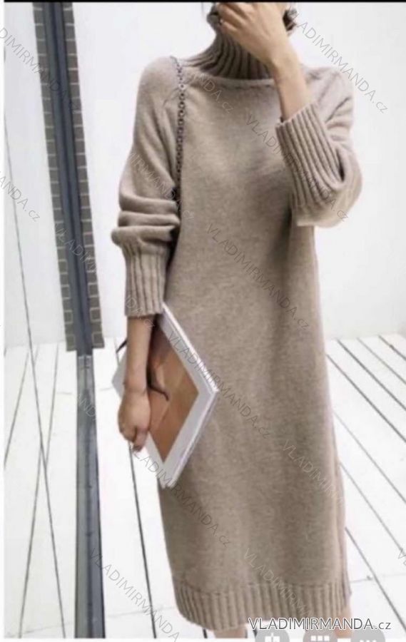 Šaty pletené s rolákom dlhý rukáv dámske (S/M ONE SIZE) TALIANSKA MÓDA IMWB223903