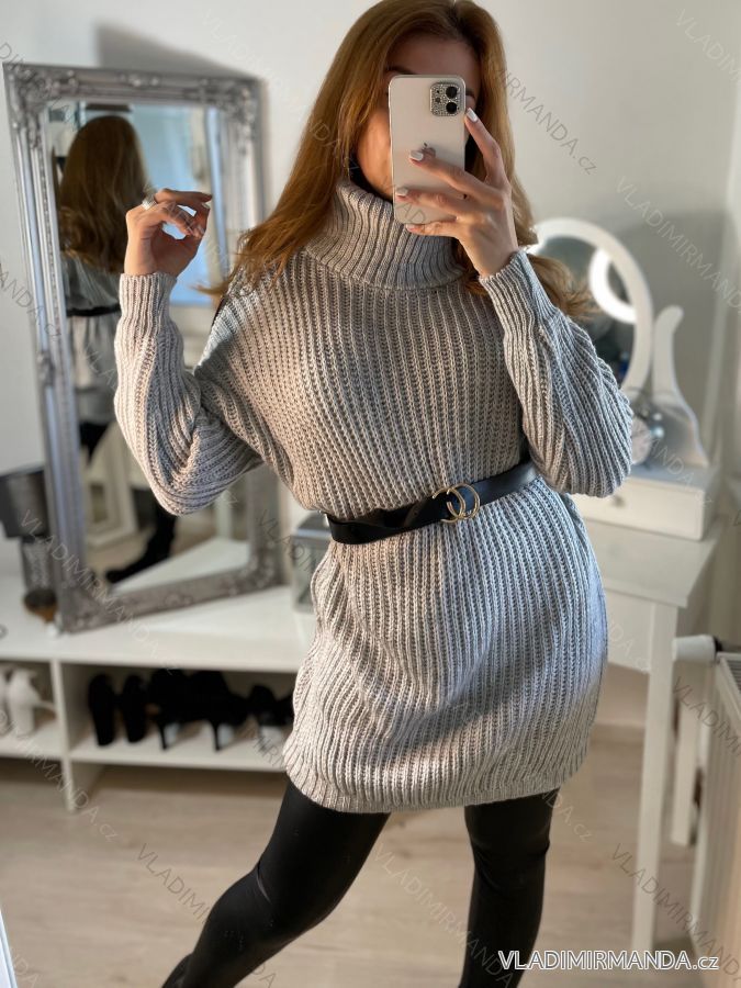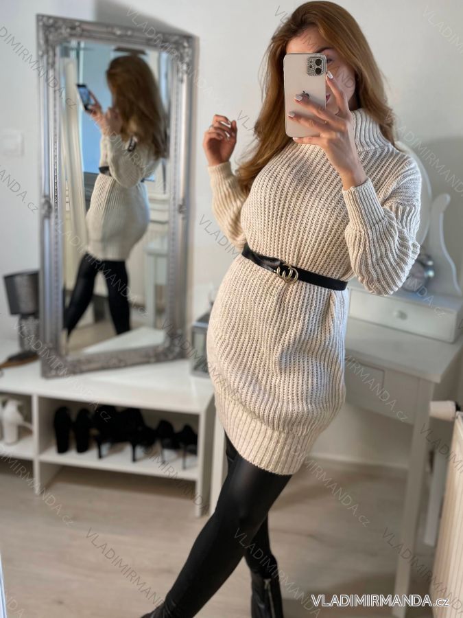 TOVAR (120877) > oblečenie dámske (81944) > šaty (30768) > Šaty pletené/sveter s rolákom dlhý rukáv dámske (S/M ONE SIZE) TALIANSKA MÓDA IMWB22311 hnědá