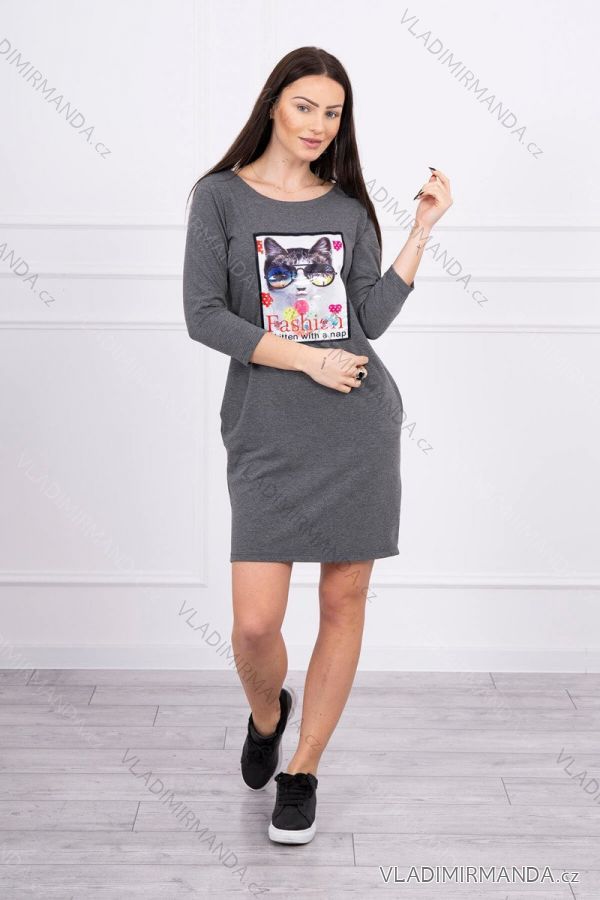 Predstavujeme vám módne šaty. Šaty majú všitú grafiku znázorňujúcu mačku. Šaty majú vrecká. Ideálna ponuka pre každý deň. V šatníku určite nemôže chýbať. Šaty sú vyrobené z vysoko kvalitného materiálu. Veľkosť je univerzálna a bude vhodná pre dámy, ktoré nosia veľkosti S, M alebo L.