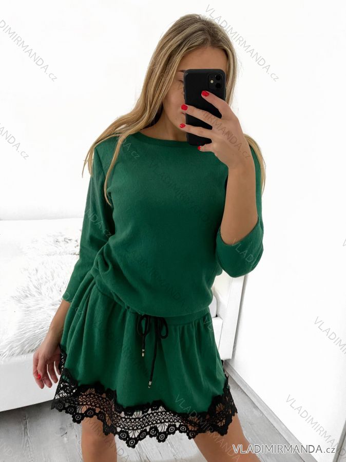 Šaty s krajkou 3/4 dlouhý rukáv dámské (S/M/L/XL ONE SIZE) ITALSKÁ MÓDA IMD22990/DU L/XL tmavo zelená
