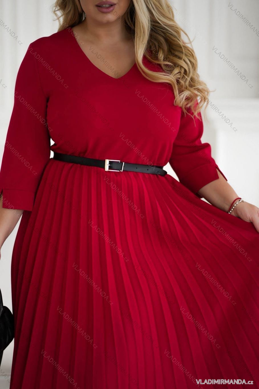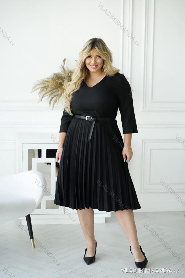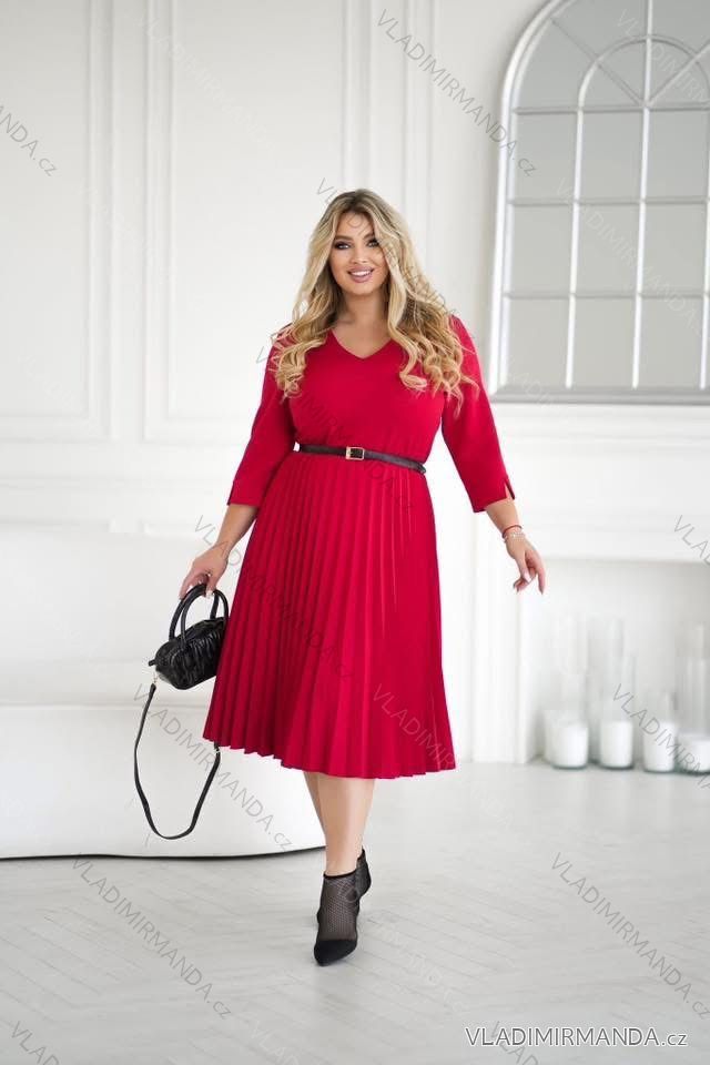 TOVAR (120833) > oblečenie dámske (81900) > šaty (30751) > Šaty nadrozmerné XXL+ pro Boubelky (4448) > Šaty s páskem elegantný 3/4rukáv dámske nadrozmer (38-48) POLSKÁ MÓDA PMLLD255078