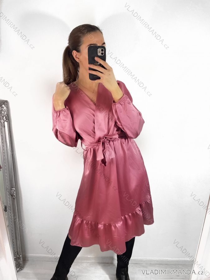 TOVAR (120177) > oblečenie dámske (81395) > šaty (30617) > Šaty saténové dlhý rukáv dámske (S/M ONE SIZE) TALIANSKA MÓDA IMWD23101/DU S/M ružová