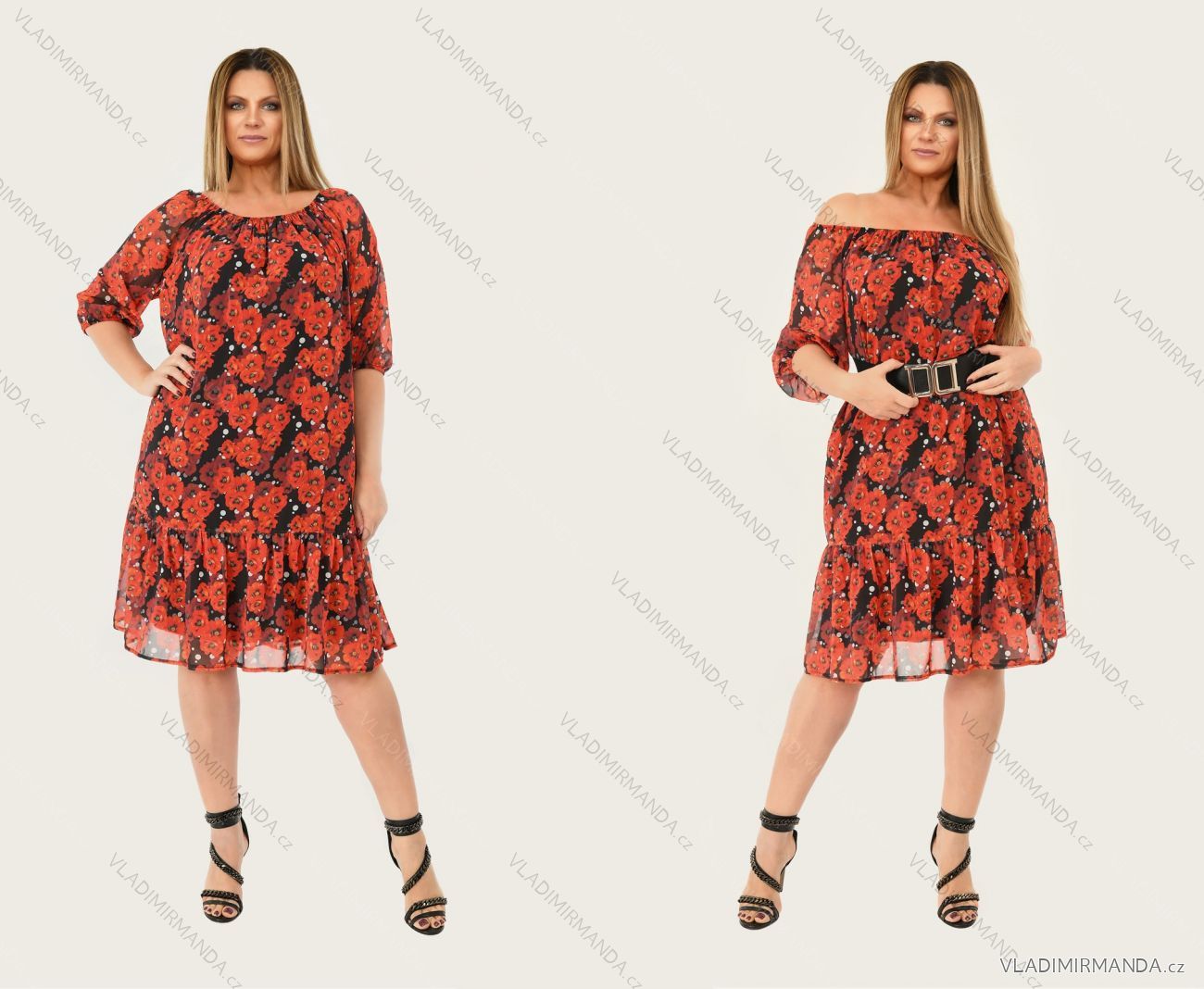 TOVAR (120707) > oblečenie dámske (82061) > šaty (31042) > Šaty šifónové carmen 3/4 rukáv dámske nadrozmer (2XL/3XL ONE SIZE) POLSKÁ MÓDA PMLSF22LUCIA/DU 2XL/3XL