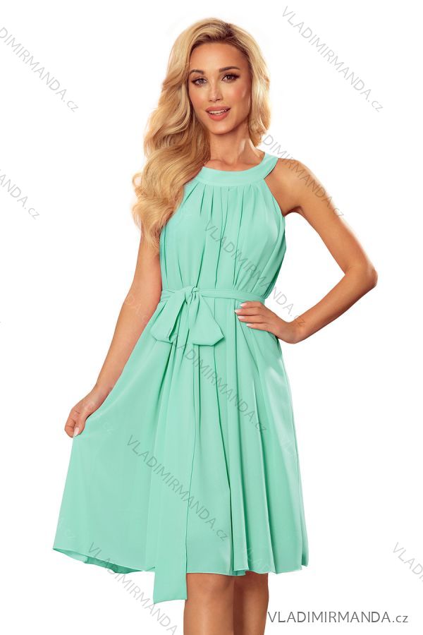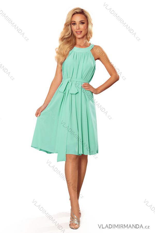 TOVAR (120623) > oblečenie dámske (81733) > šaty (30707) > Šaty spoločenské (5013) > Šaty pre družičky (679) > Šaty šifónové s viazaním dámske (S-2XL) POĽSKÁ MÓDA NMC-350-5/DR - zelená mintova - XL