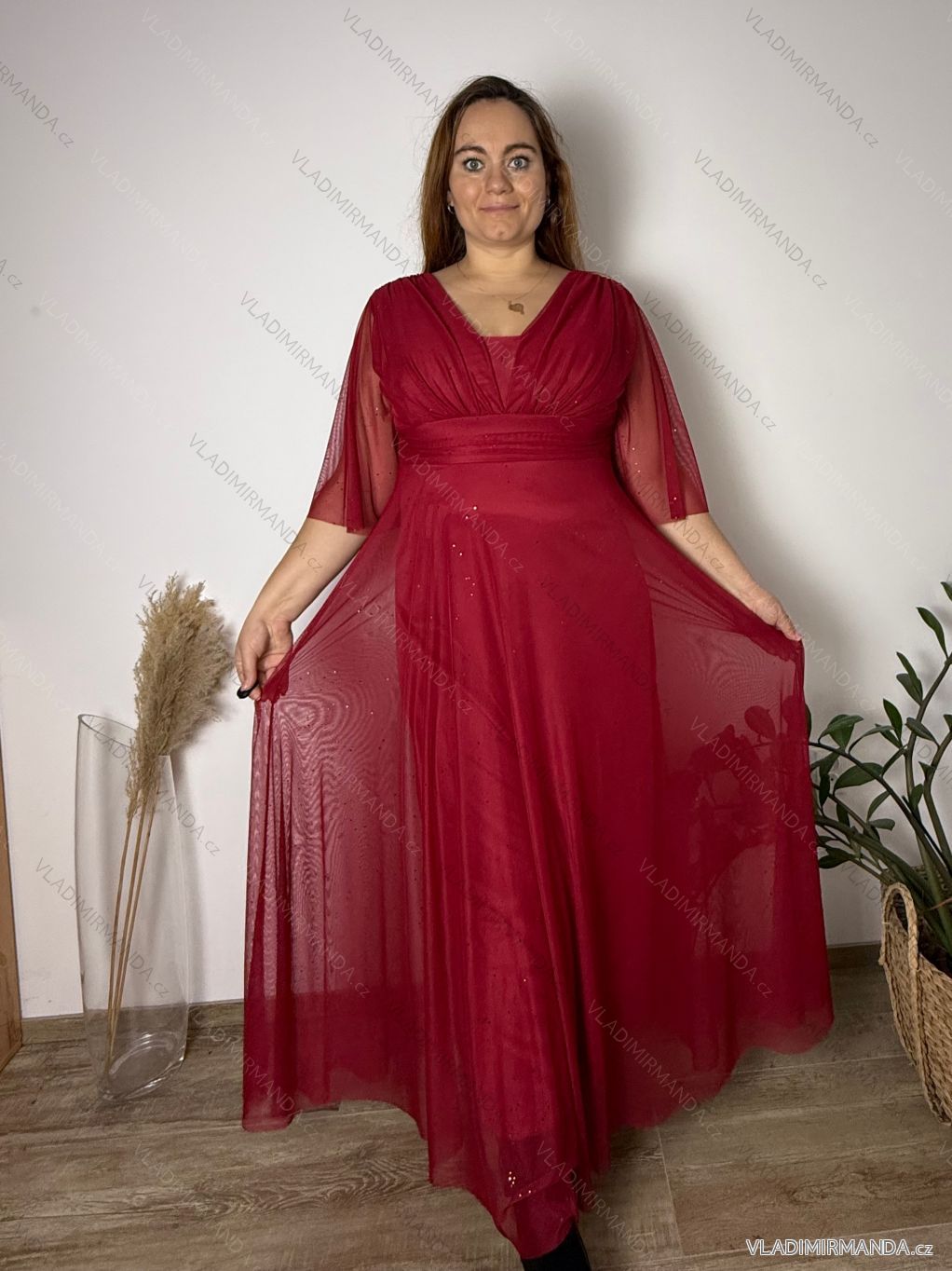 Modelka Veronika na fotografiách má výšku 170 cm a miery 109-85-115 (prsia-pas-boky).