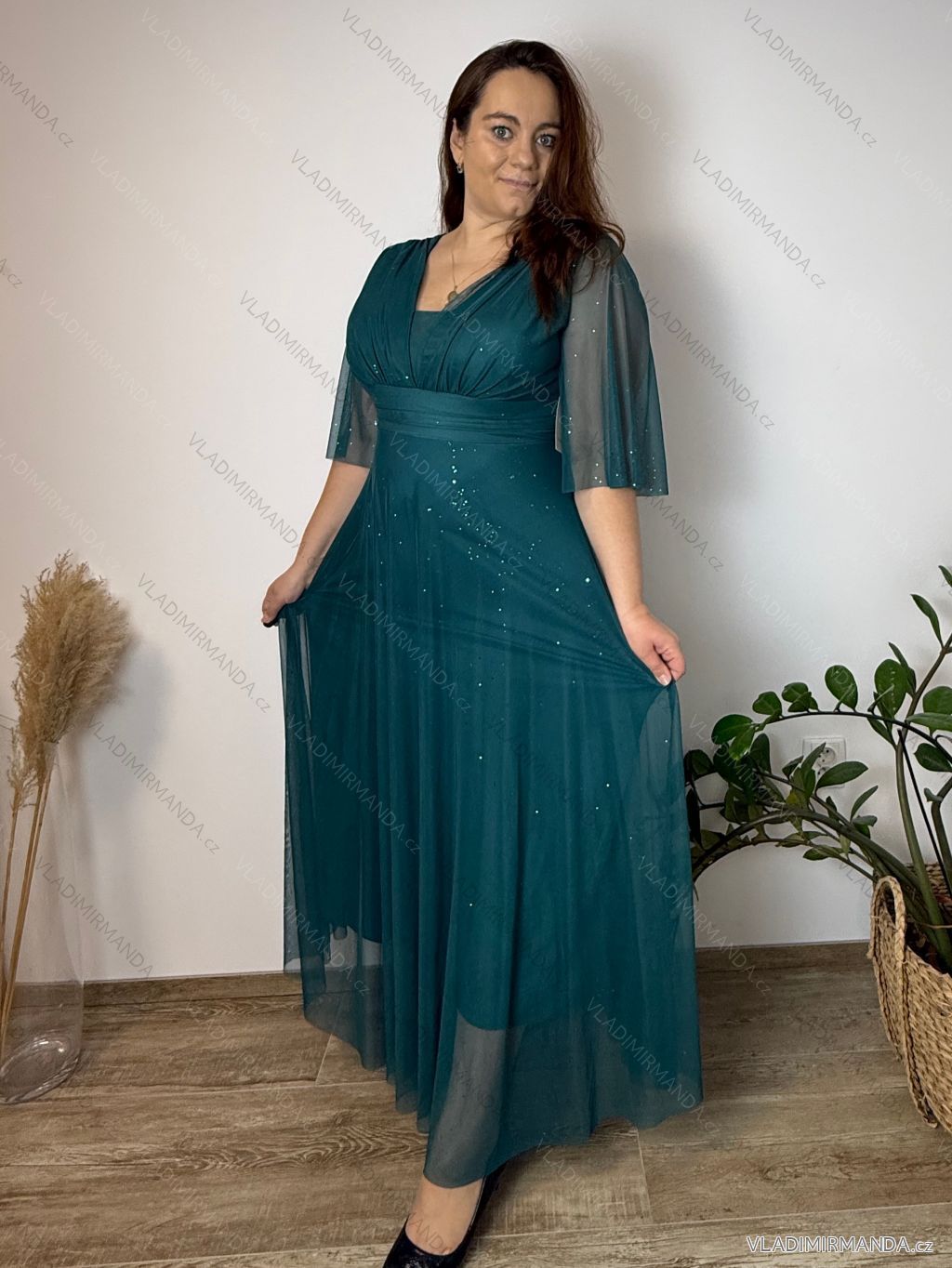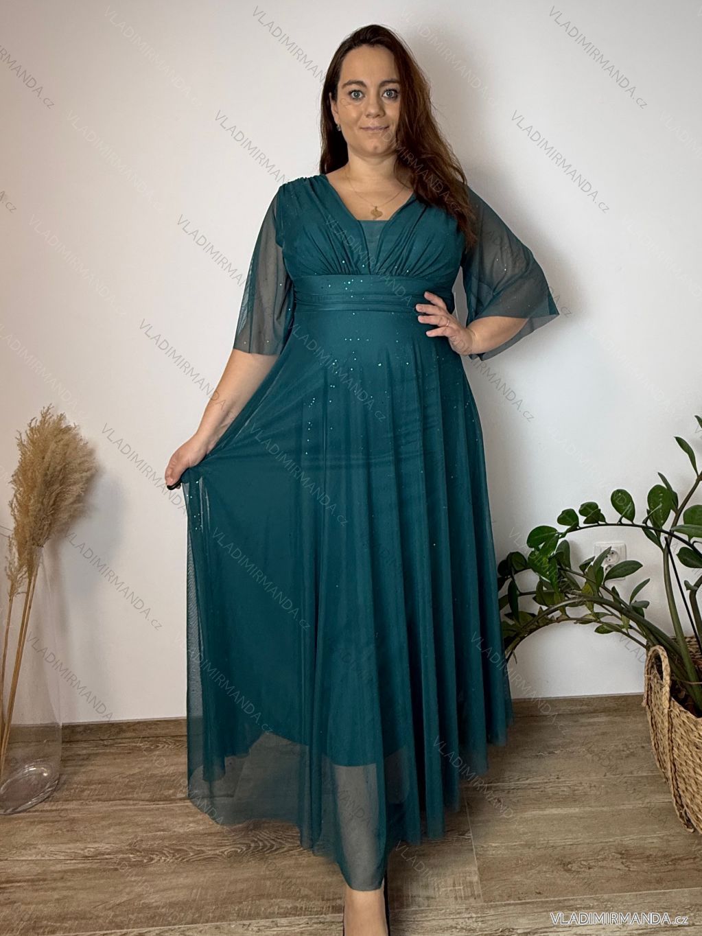 TOVAR (120465) > oblečenie dámske (81583) > šaty (30655) > Šaty spoločenské (5016) > Šaty plesové dlhé (3168) > Šaty společenské dlhé dlhý rukáv dámske nadrozmer BARBARA (42/44/46 ONE SIZE) TALIANSKA MÓDA IMWMY251113/DU petrolejová
