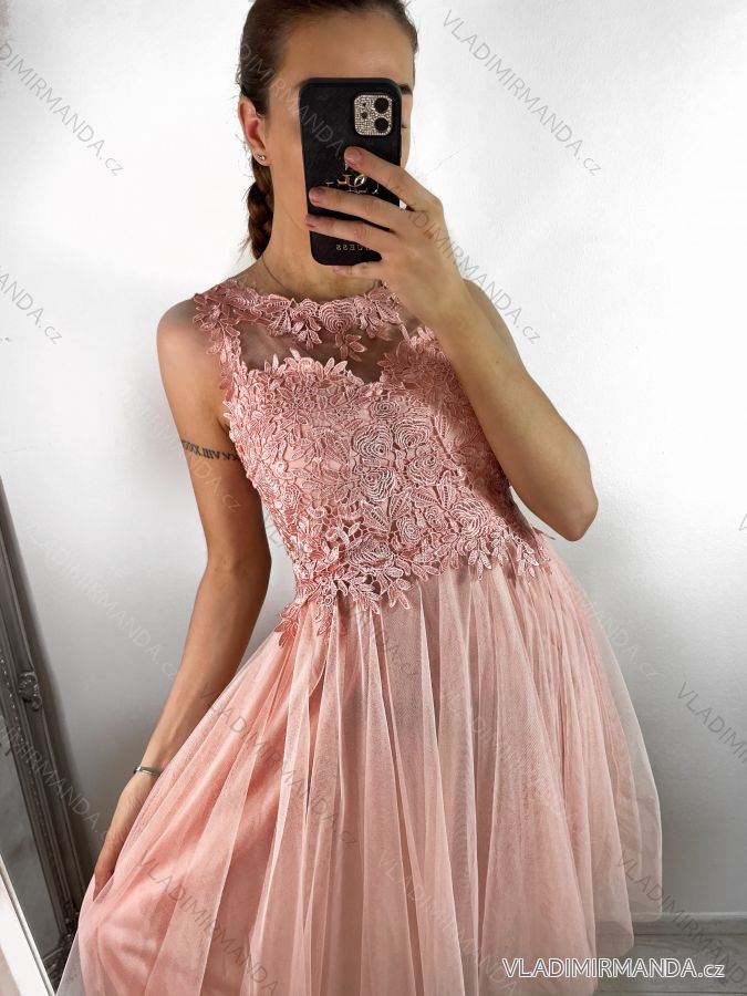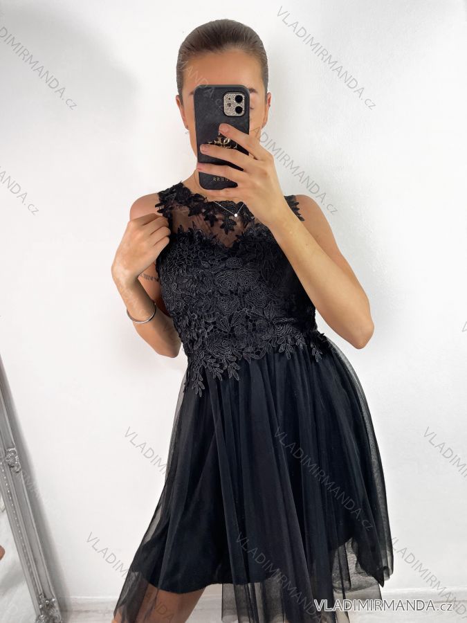 Šaty společenské elegantné plesové krátké bez rukávov čipka dámske (uni s/m) TALIANSKA MóDA IM921BELLA
