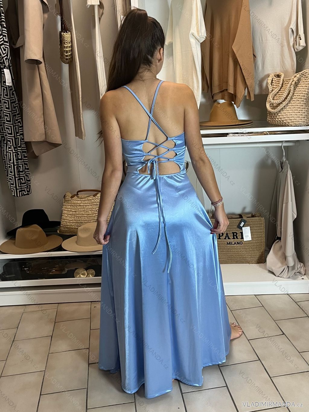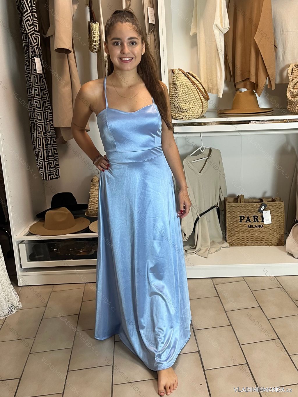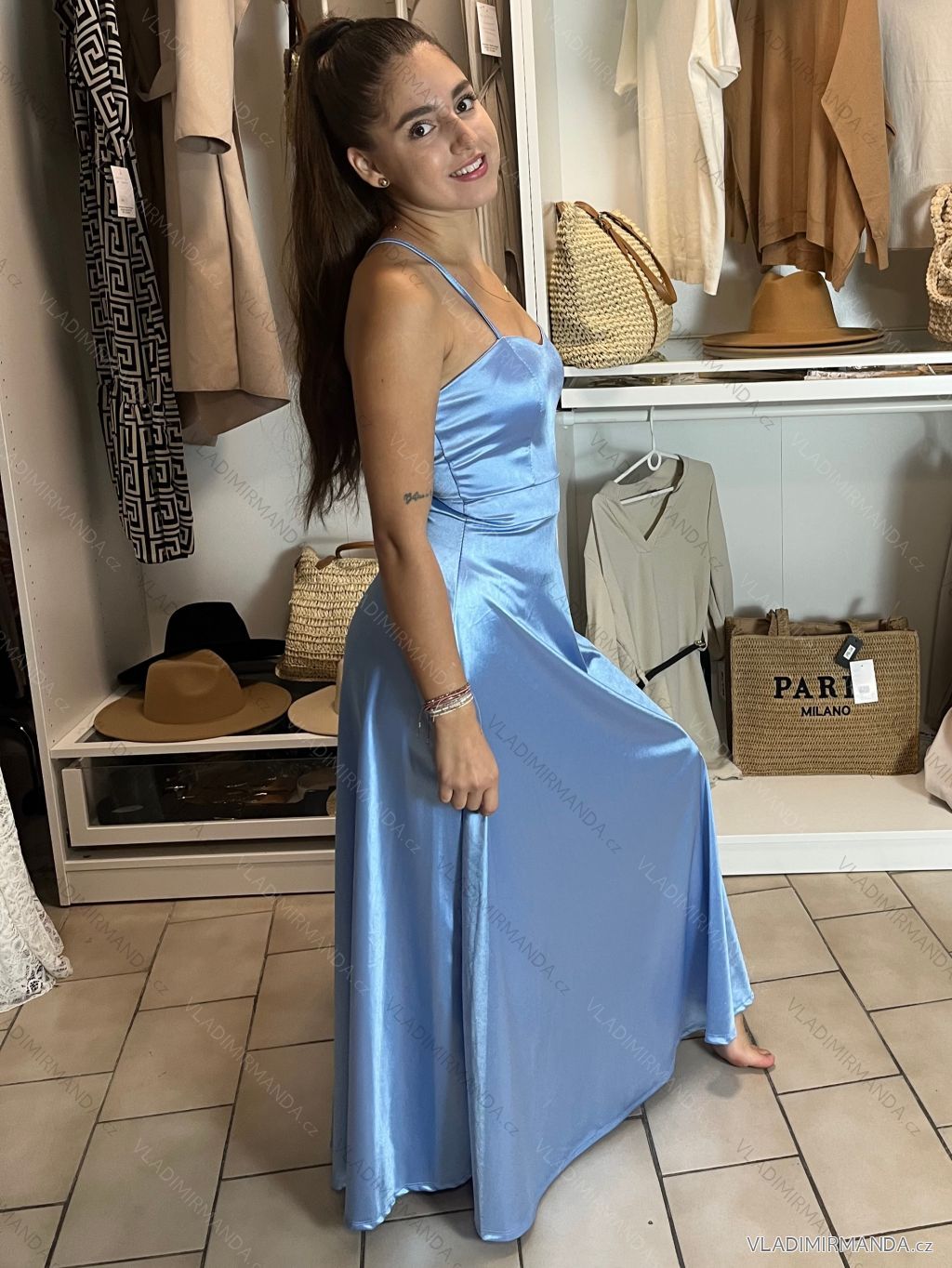 Šaty dlhé elegantné na ramienka dámske (S/M ONE SIZE) TALIANSKA MODA IM323013/DU - svetlo modrá - S / M