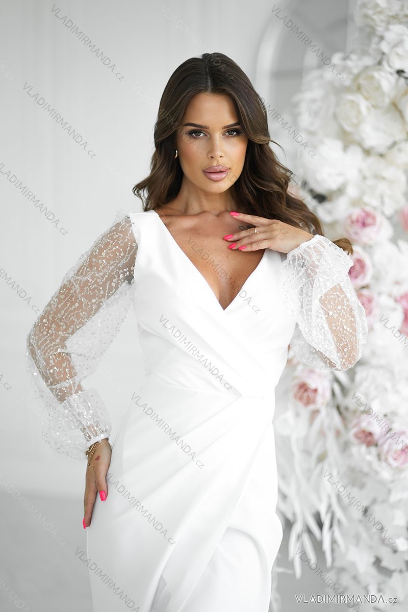 Šaty spoločenské dlhý rukáv dámske (34-48) POLSKÁ MÓDA PMLBC25314-04 biela 34