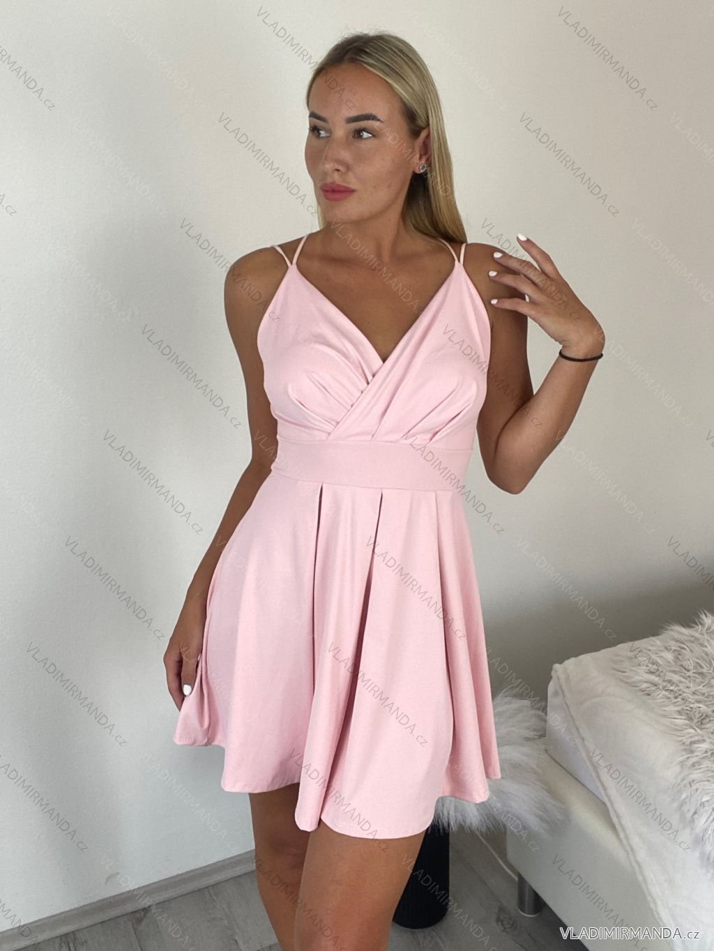 Šaty spoločenské krátké na ramienka dámske (S/M ONE SIZE) TALIANSKA MÓDA IMM26M46120/DUR S / M ružová