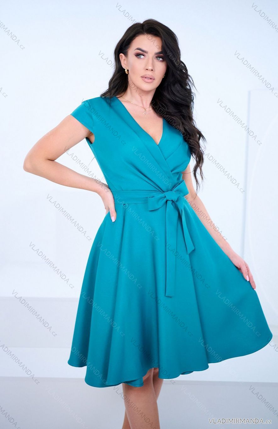 Šaty spoločenské krátky rukáv dámske (36-54) POLSKÁ MÓDA PMLMR23ROXANA-7/DUR 42 tyrkysová