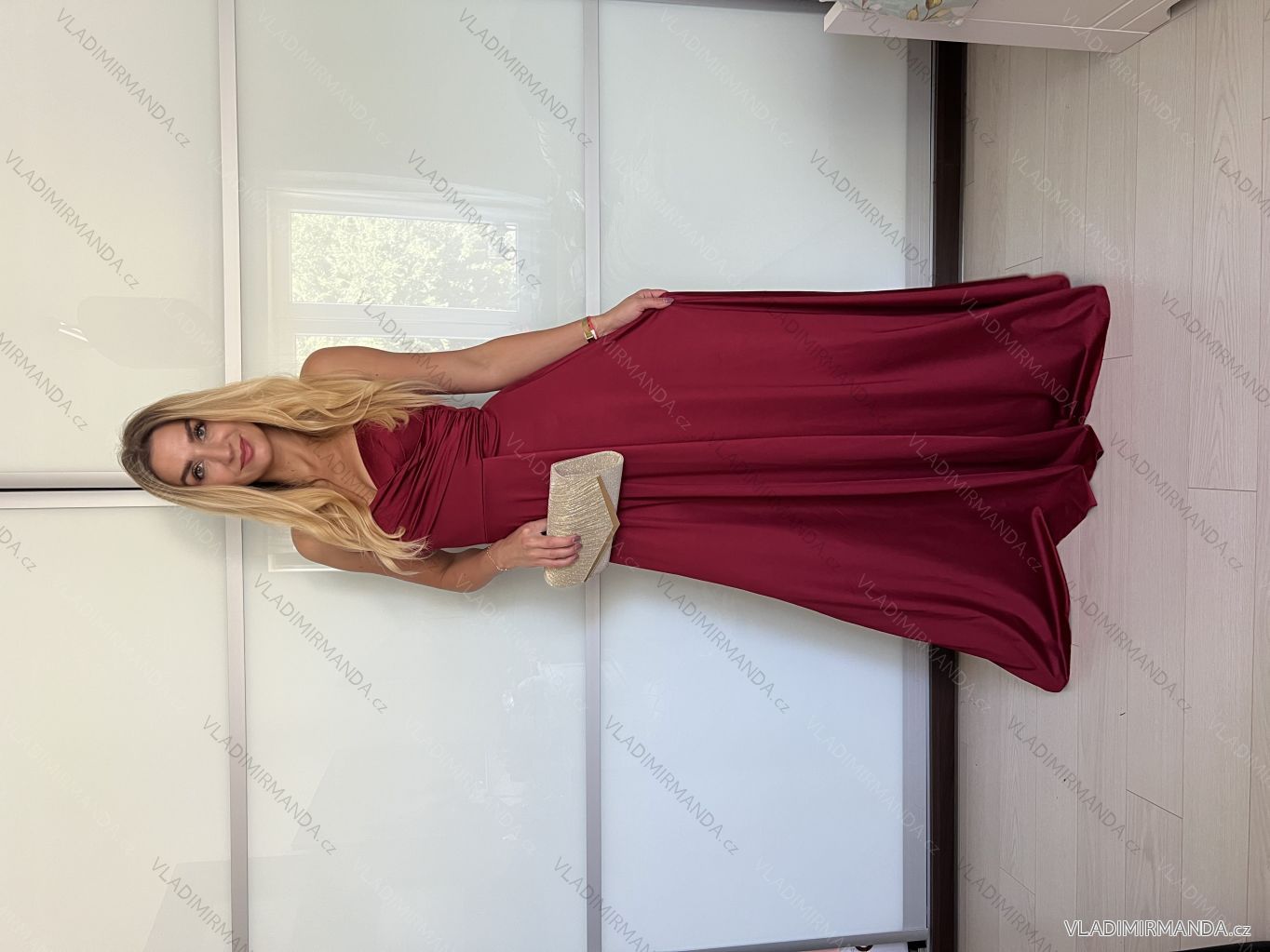 Šaty spoločenské saténové dlhé na ramienka dámske (XS/S/M ONE SIZE) TALIANSKA MÓDA IMM25M40243