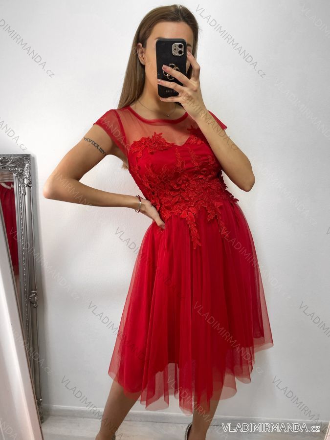Šaty spoločenské tylové krátky rukáv dámske (S/M ONE SIZE) TALIANSKA MóDA IM9238938