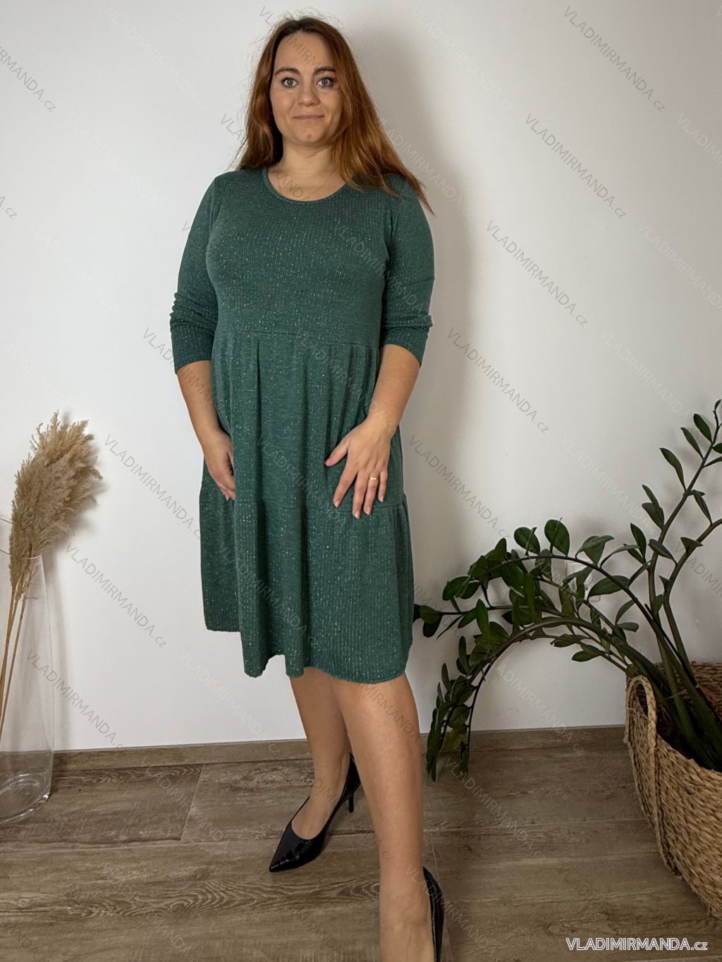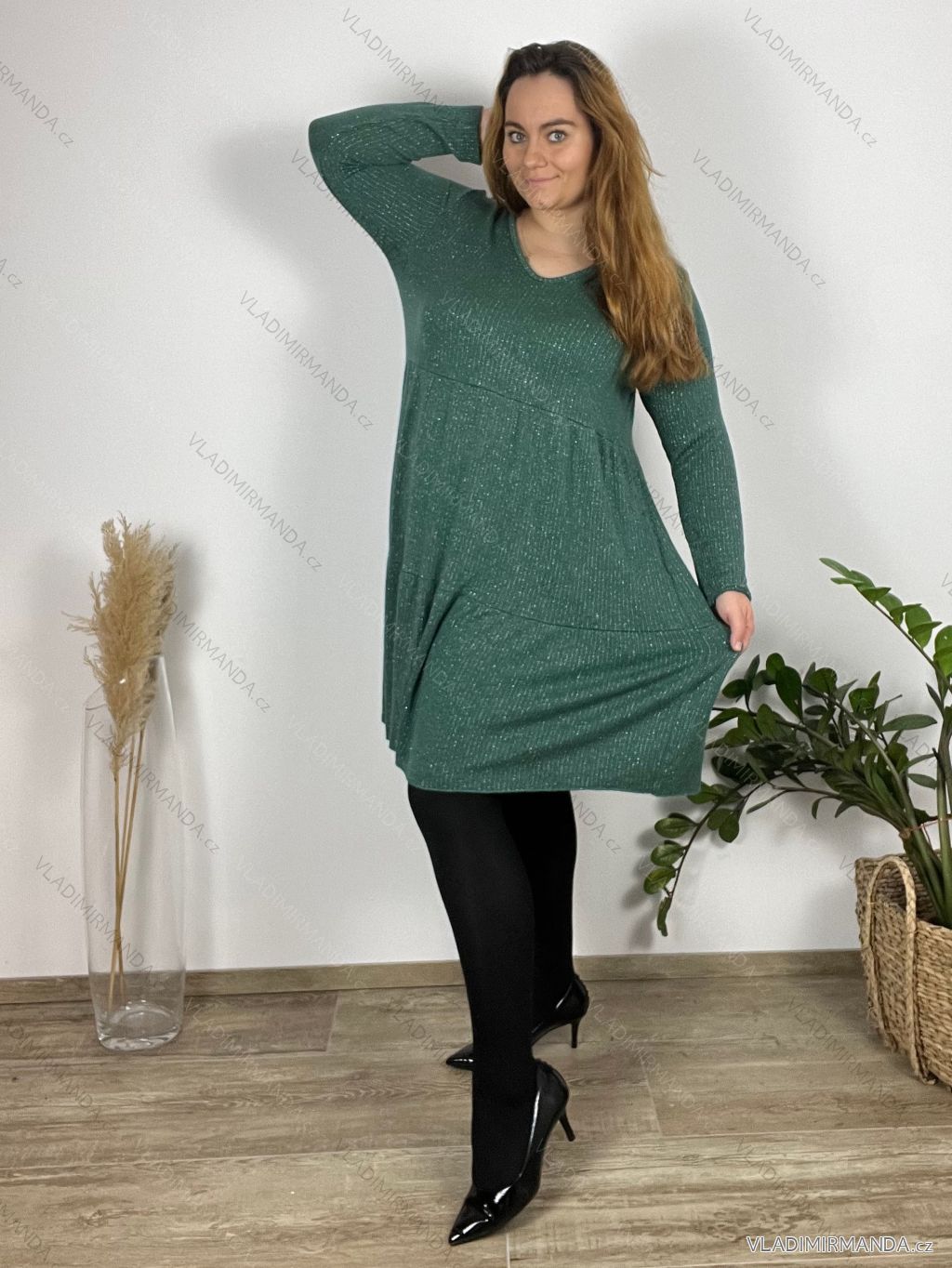 Šaty teplé dlouhý rukáv dámské nadrozměr GIZA (52/54/56 ONE SIZE) ITALSKÁ MÓDA IM425807/DUR čierna
