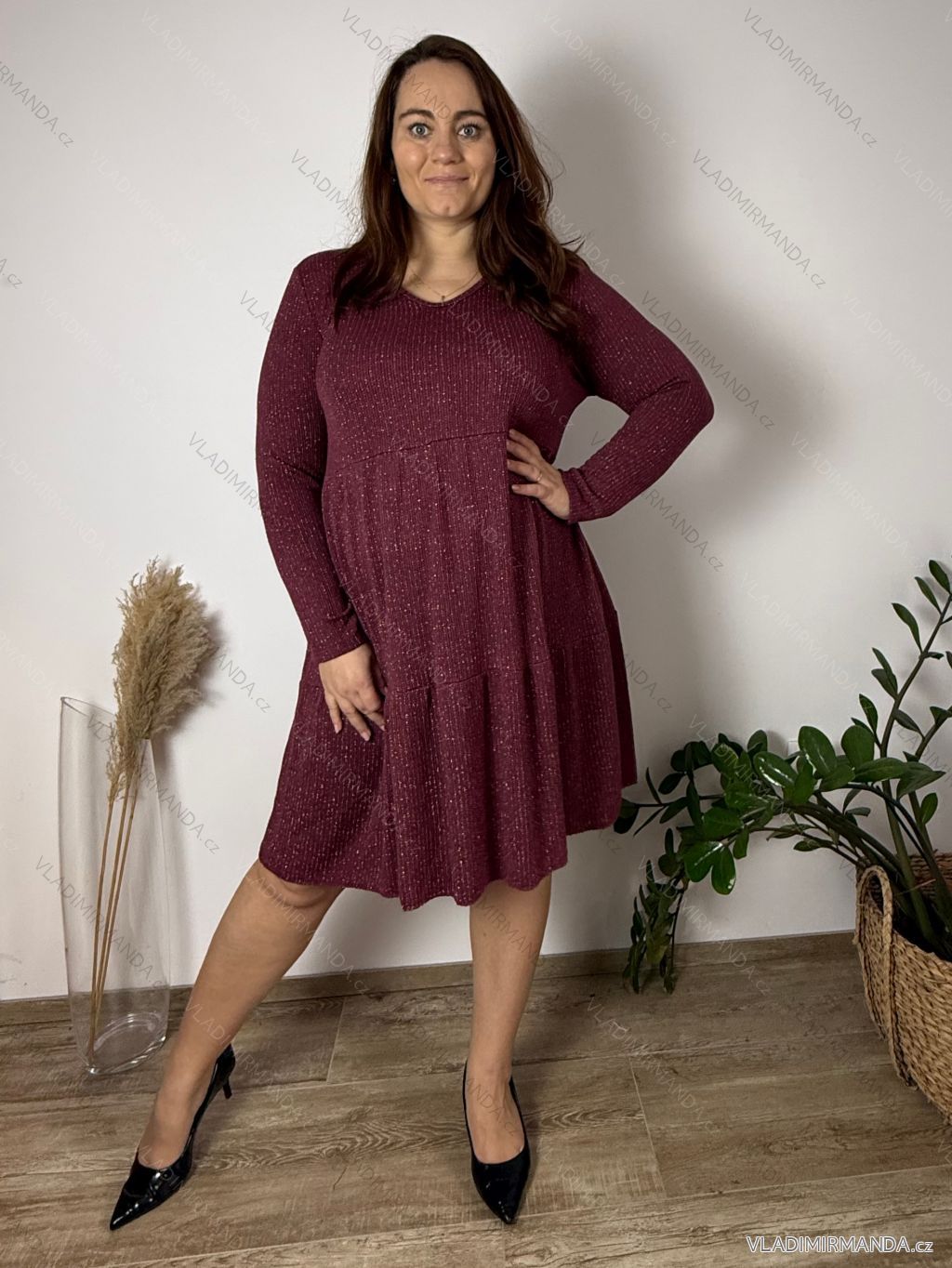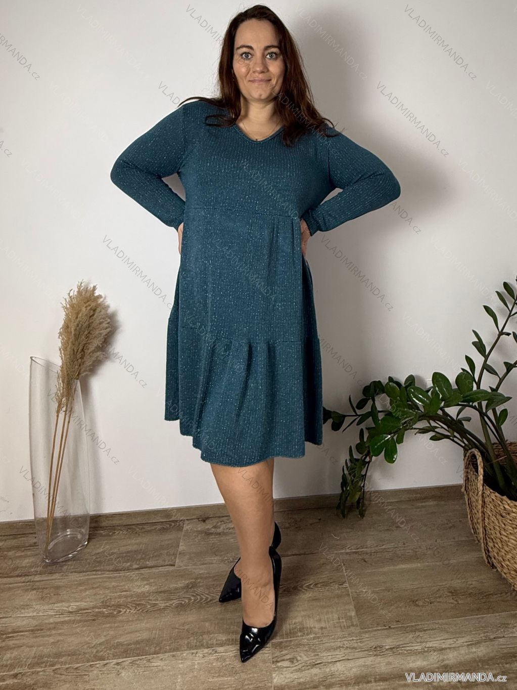 Šaty teplé dlouhý rukáv dámské nadrozměr GIZA (52/54/56 ONE SIZE) ITALSKÁ MÓDA IM425807/DUR zelená