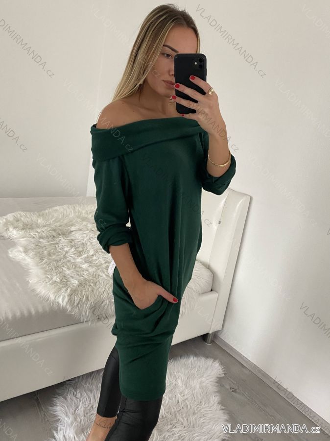 Šaty teplé klasik carmen dlhý rukáv dámske (S/M ONE SIZE) TALIANSKA MóDA IM322297