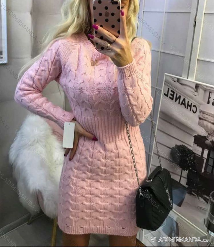 Šaty teplé pletené dlouhý rukáv dámské (S/M ONE SIZE) ITALSKÁ MÓDA IMWBL23011