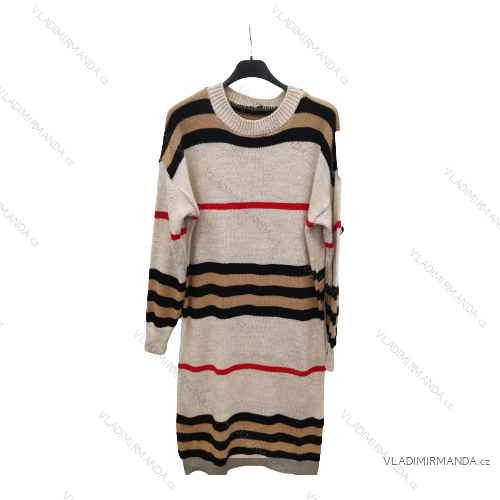 Šaty úpletové dlouhý rukáv dámské proužek (S/M ONE SIZE) ITALSKÁ MÓDA IMPLI228616