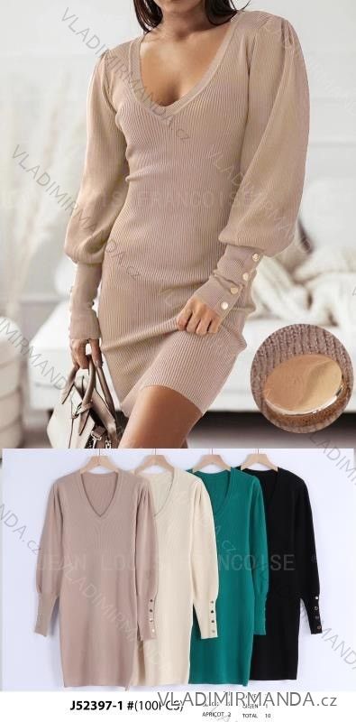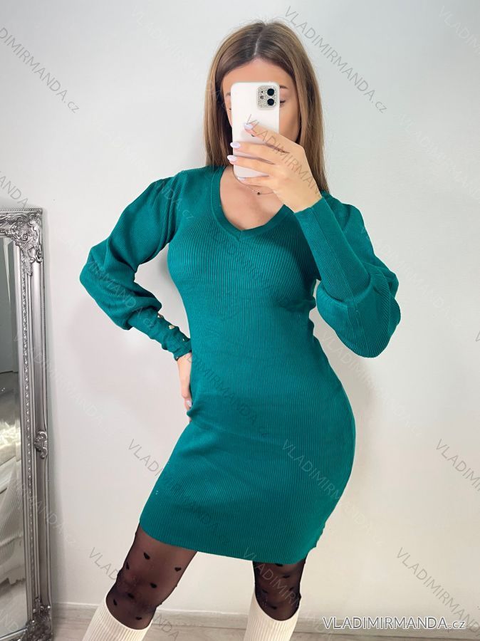 Šaty úpletové elegantní dlouhý rukáv dámské (S/M ONE SIZE) FRANCOUZSKÁ MÓDA FMWT22F52397