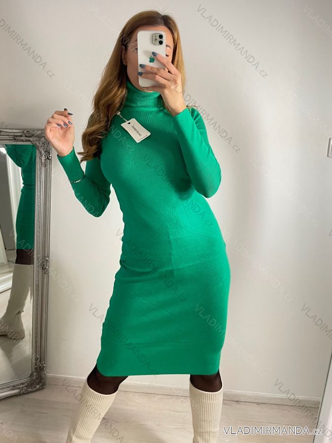Šaty úpletové s rolákom dlhý rukáv dámske (S/M ONE SIZE) TALIANSKA MÓDA IMM22J51753/DR S/M ružová