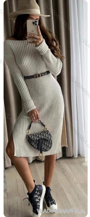 TOVAR (125081) > oblečenie dámske (81754) > šaty (30875) > Šaty úpletové teplé s opaskom dlhý rukáv dámske (S/M ONE SIZE) TALIANSKA MÓDA IMWL22031