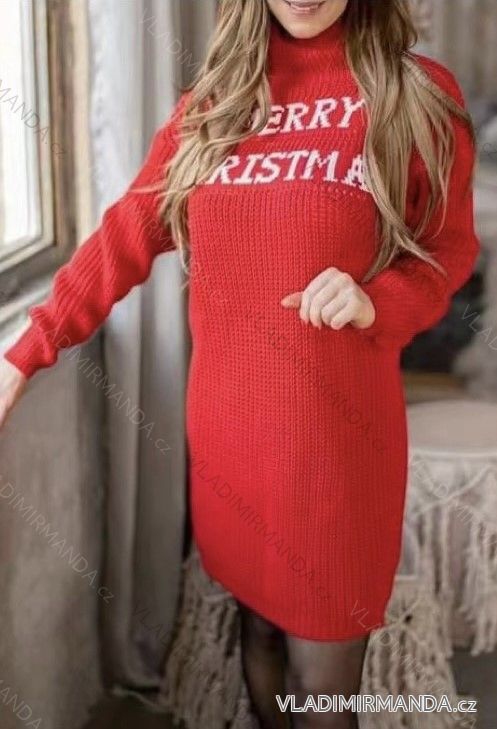 Šaty vánoční pletené dlouhý rukáv dámské (S/M ONE SIZE) ITALSKÁ MÓDA IMWB224090
