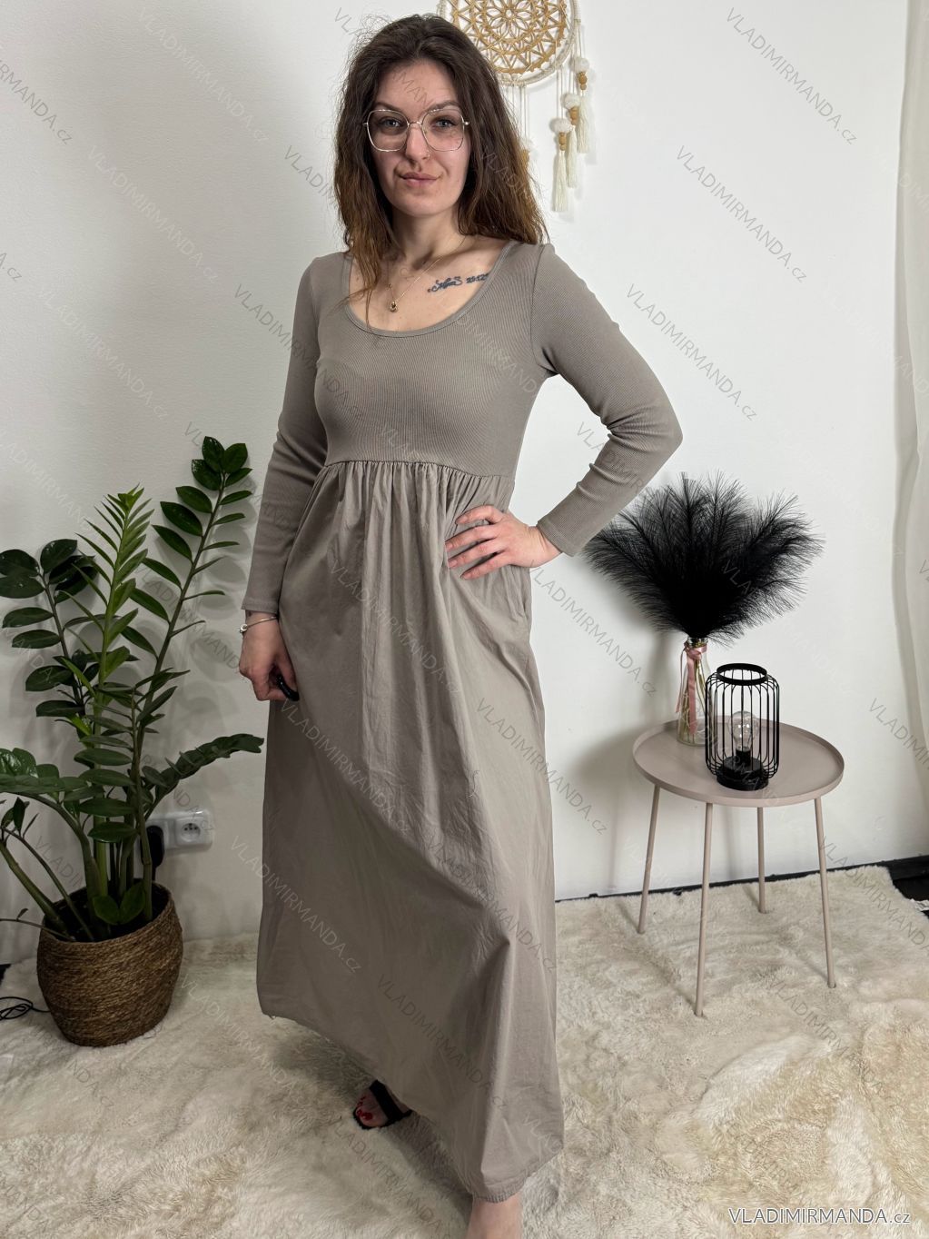Šaty voľnočasové dlouhý rukáv dámske VIVA (S/M/L ONE SIZE) TALIANSKA MÓDA IMSM2511125/DUR S/M/L béžová