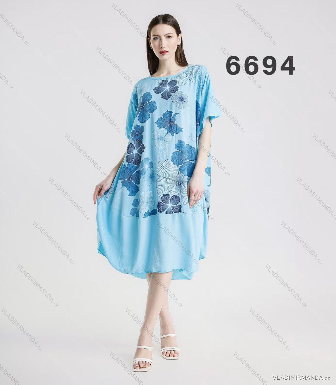 Šaty voľnočasové letné oversize kvetované krátky rukáv dámske nadrozmer (50/52/54 ONE SIZE) TALIANSKA MÓDA IM425435