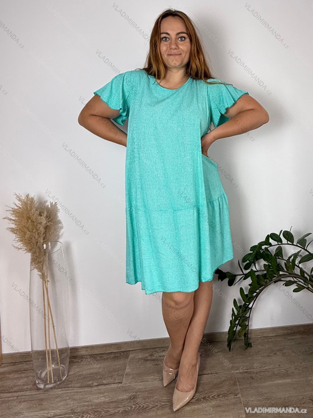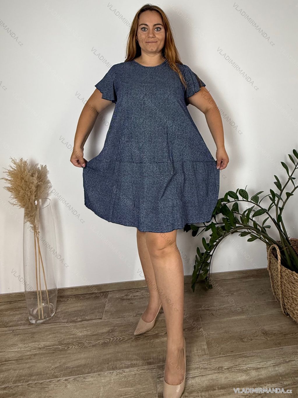 Šaty voľnočasové letné oversize prúžok krátky rukáv dámske nadrozmer RITA (46/48/50 ONE SIZE) TALIANSKA MÓDA IM425469/DU 46/48/50 tmavo modrá