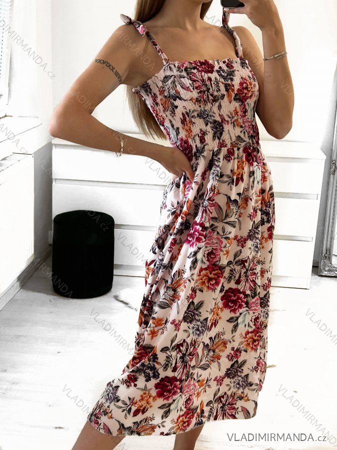 Šaty žabičkované letné na ramienka dámske (S/M ONE SIZE) TALIANSKA MÓDA IMWG222113 biela S/M