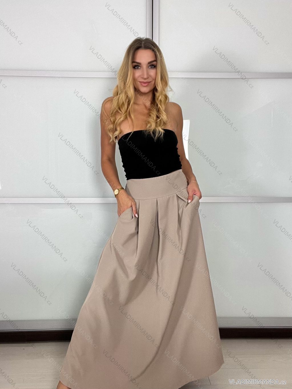 Dlhá sukňa s vreckami a gumou v páse