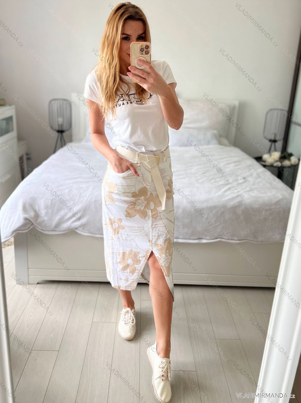 Sukňa dlhá s opaskom dámska nadrozmer (S/M/L one size ) TALIANSKA MÓDA IMWEC24038/DUR - biela - M / L