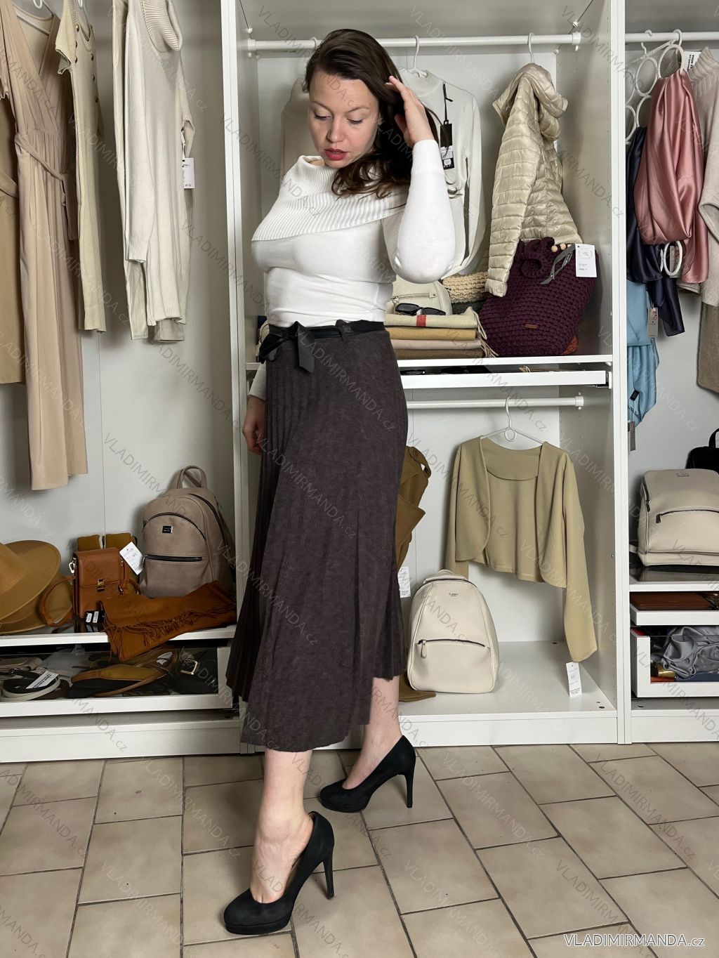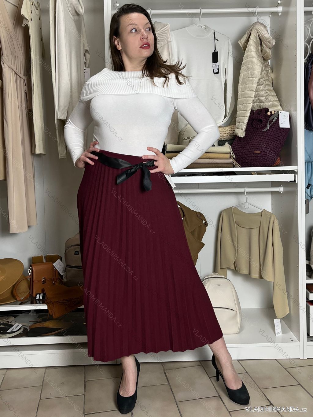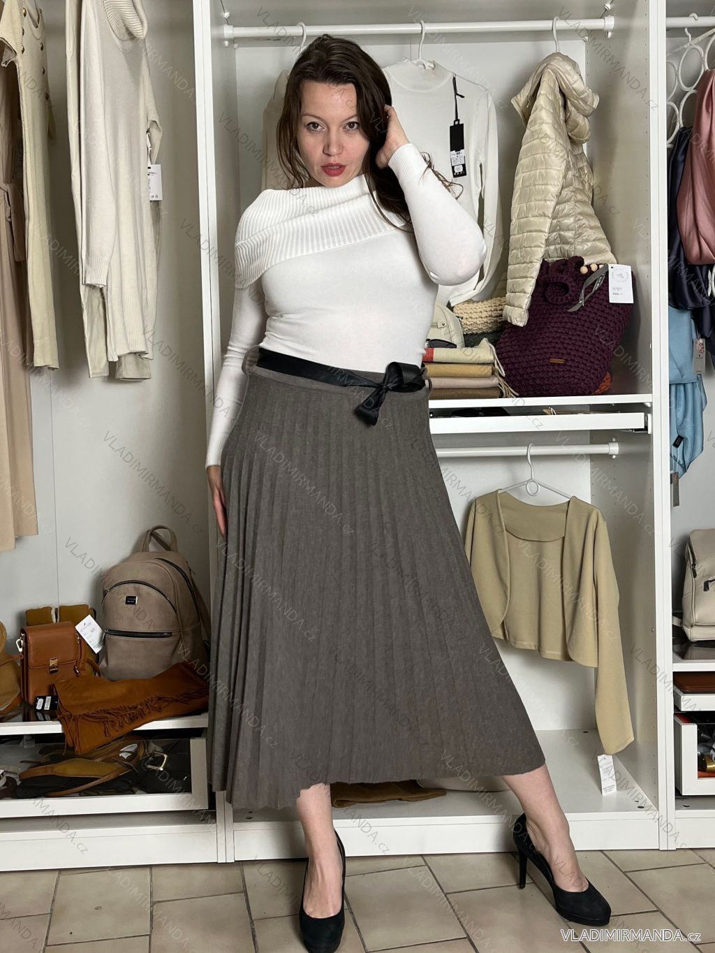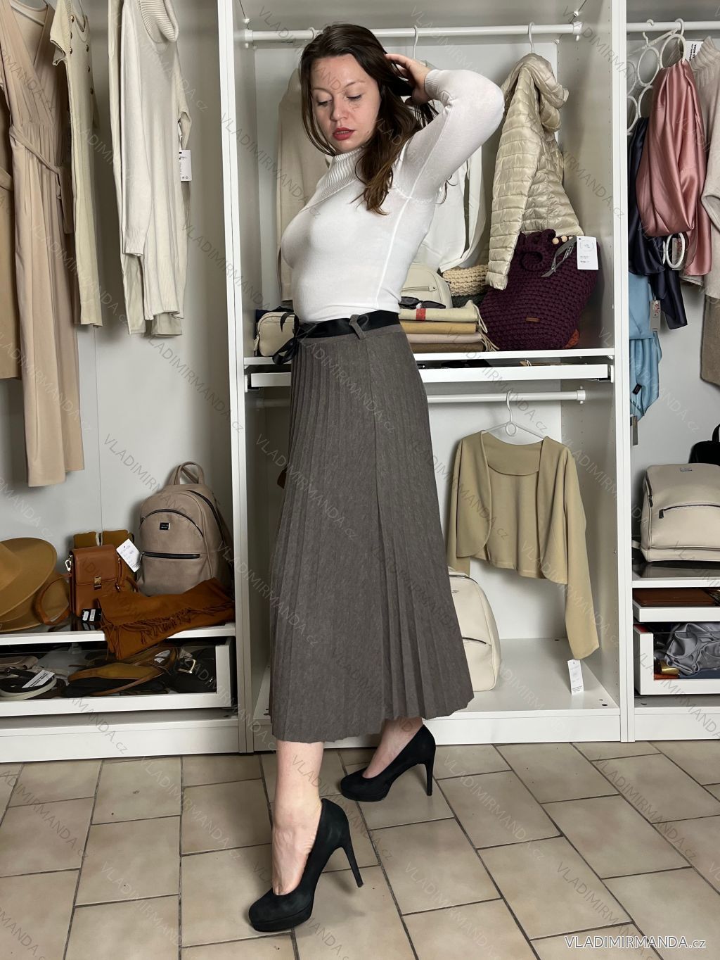 Sukňa dlhá teplá skladaná s opaskom dámska (S/M/L ONE SIZE) TALIANSKA MÓDA IMC24594