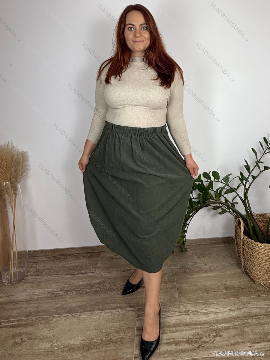 (3138) > sukňa XXL (131) > Sukňa manžestrová dámska nadrozměr INNA (48/50/52 ONE SIZE) TALIANSKA MÓDA IM4251143/DUR hnědá 48/50/52