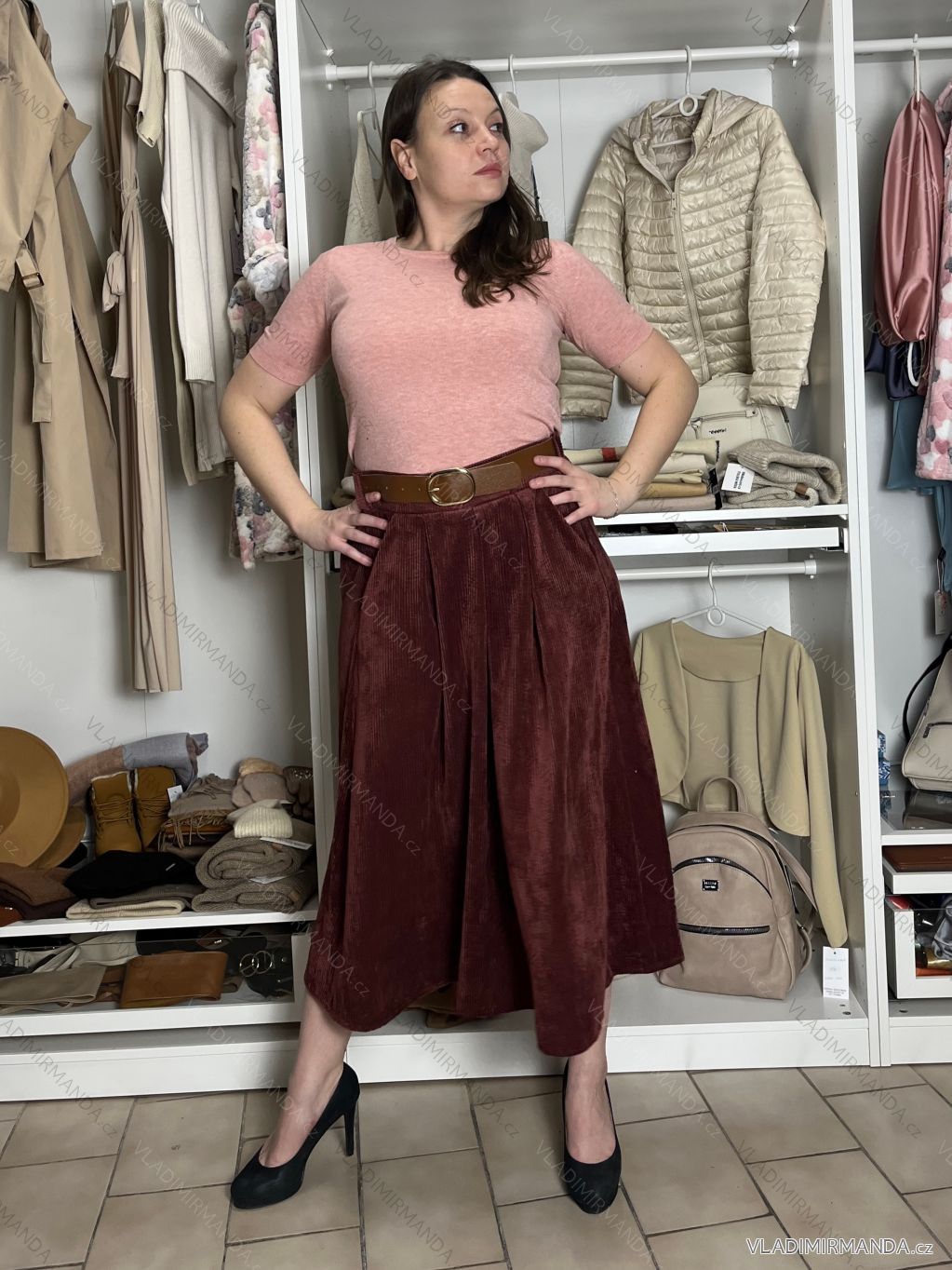 Sukňa manžestrová s páskem dámska (S/M/L ONE SIZE) TALIANSKA MÓDA IMPLU2552123/DU S/M/L hnedá