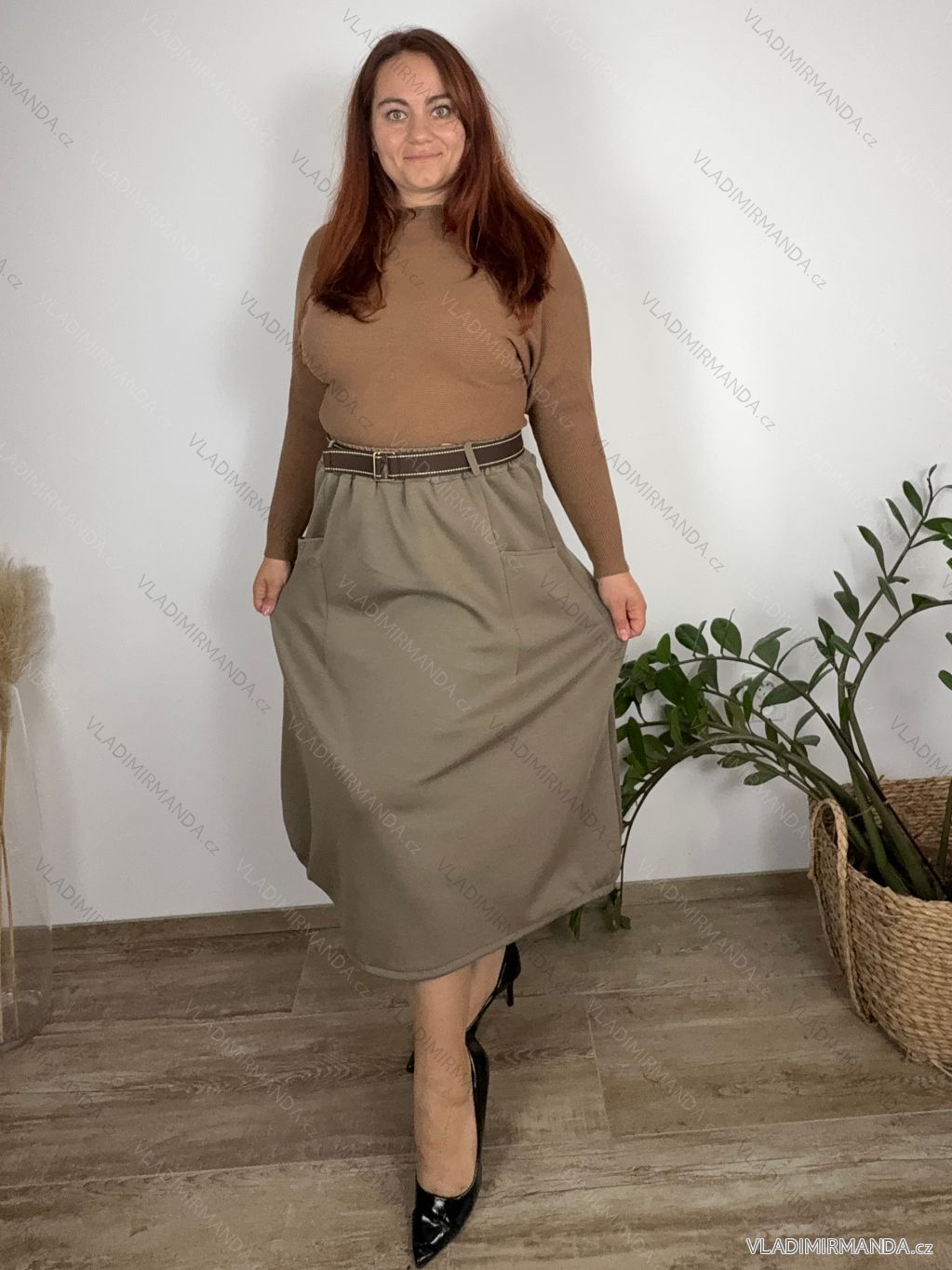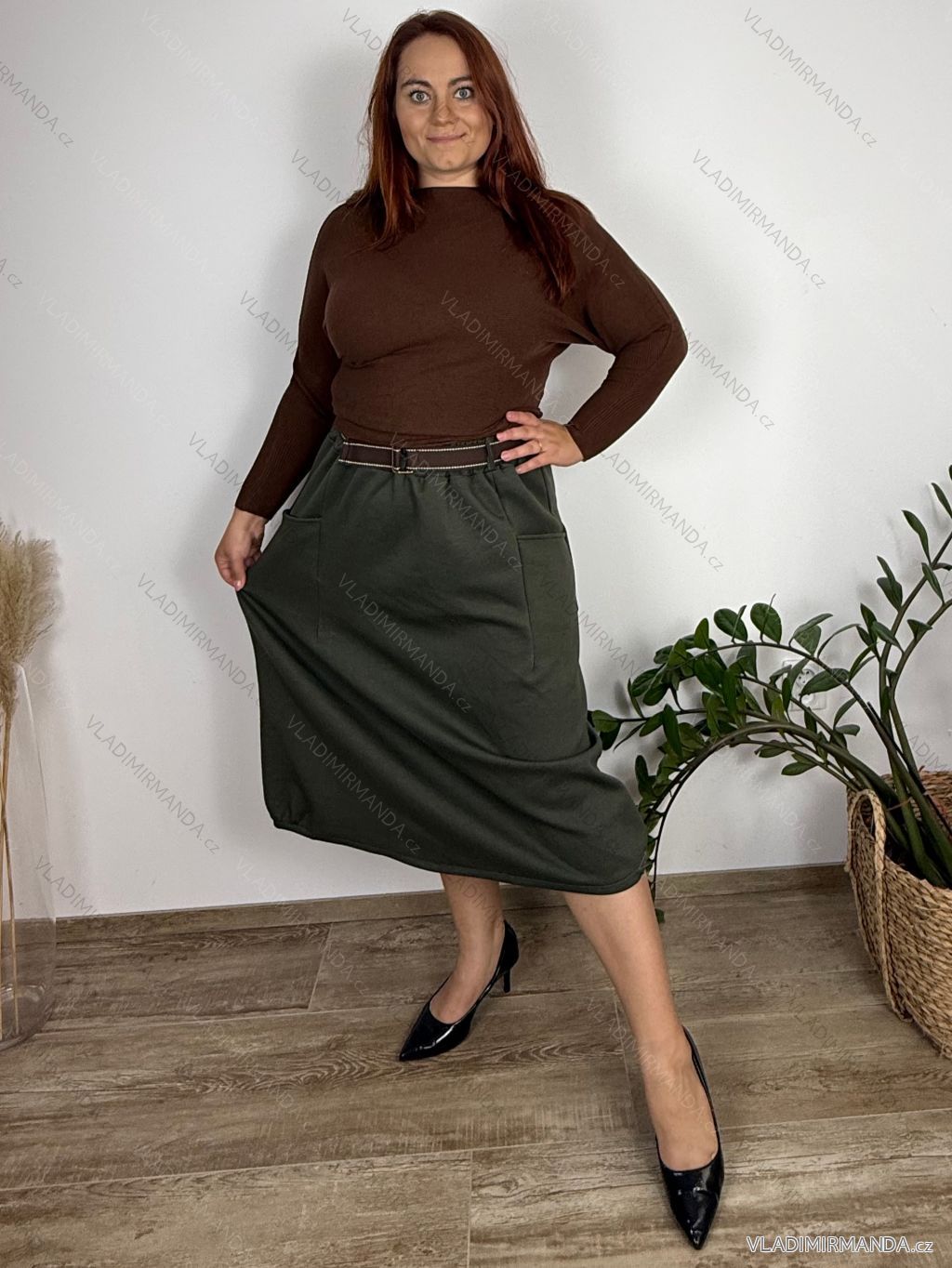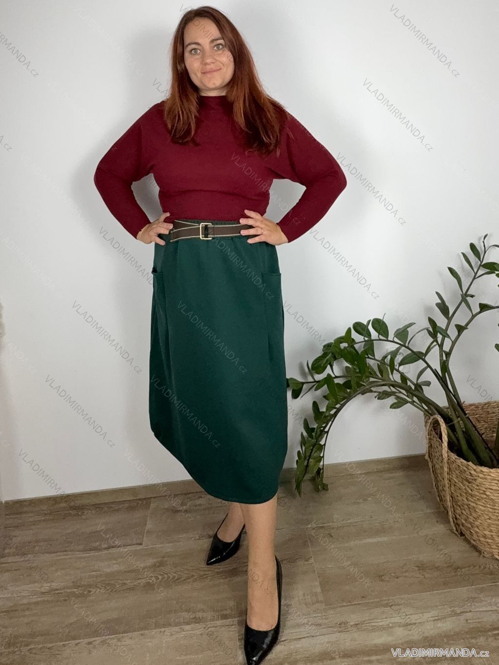 Sukňa s opaskom dámska nadrozměr INNA (48/50/52 ONE SIZE) TALIANSKA MÓDA IM4251142/DUR zelená smaragdová